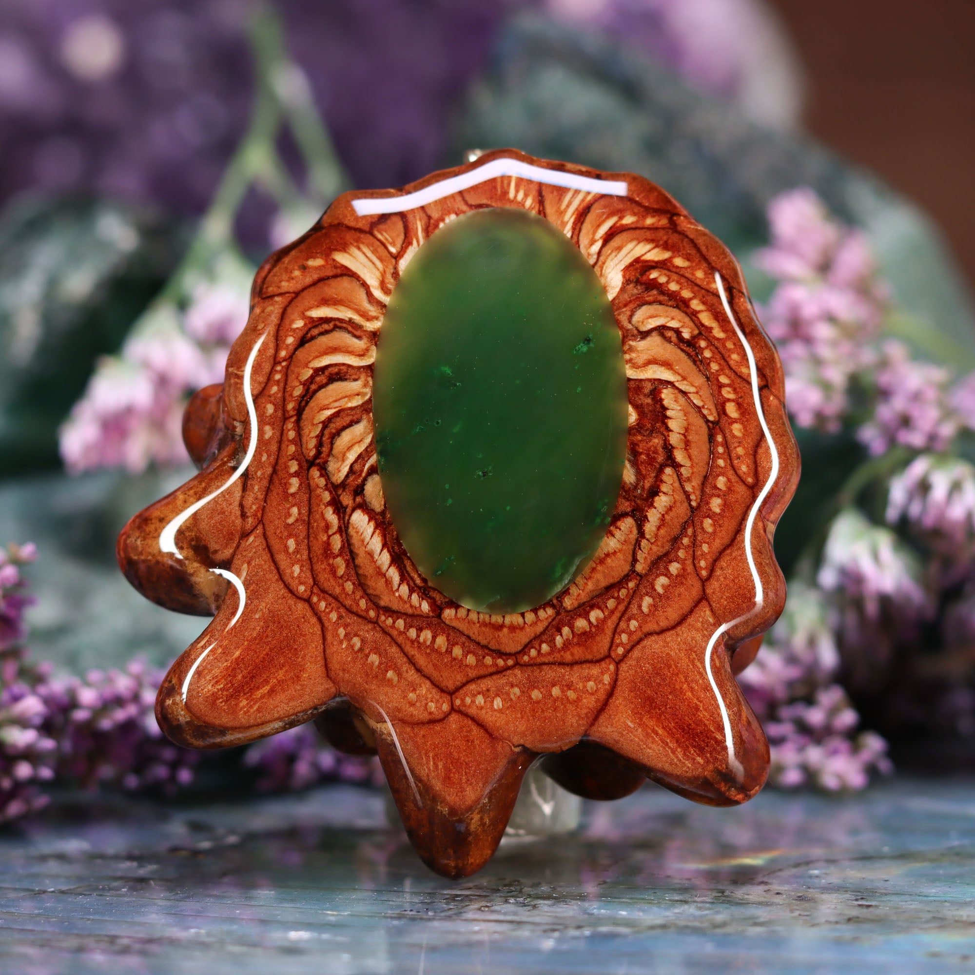 Every pinecone pendant is an elegant gift from Mother Nature -- unveiling the ornate Sacred Geometry hidden at the center of one of the world's densest Pinecones. Because only one cross-section is taken from the "heart" of each Cone, every pendant is absolutely unique, and truly one-of-a-kind.