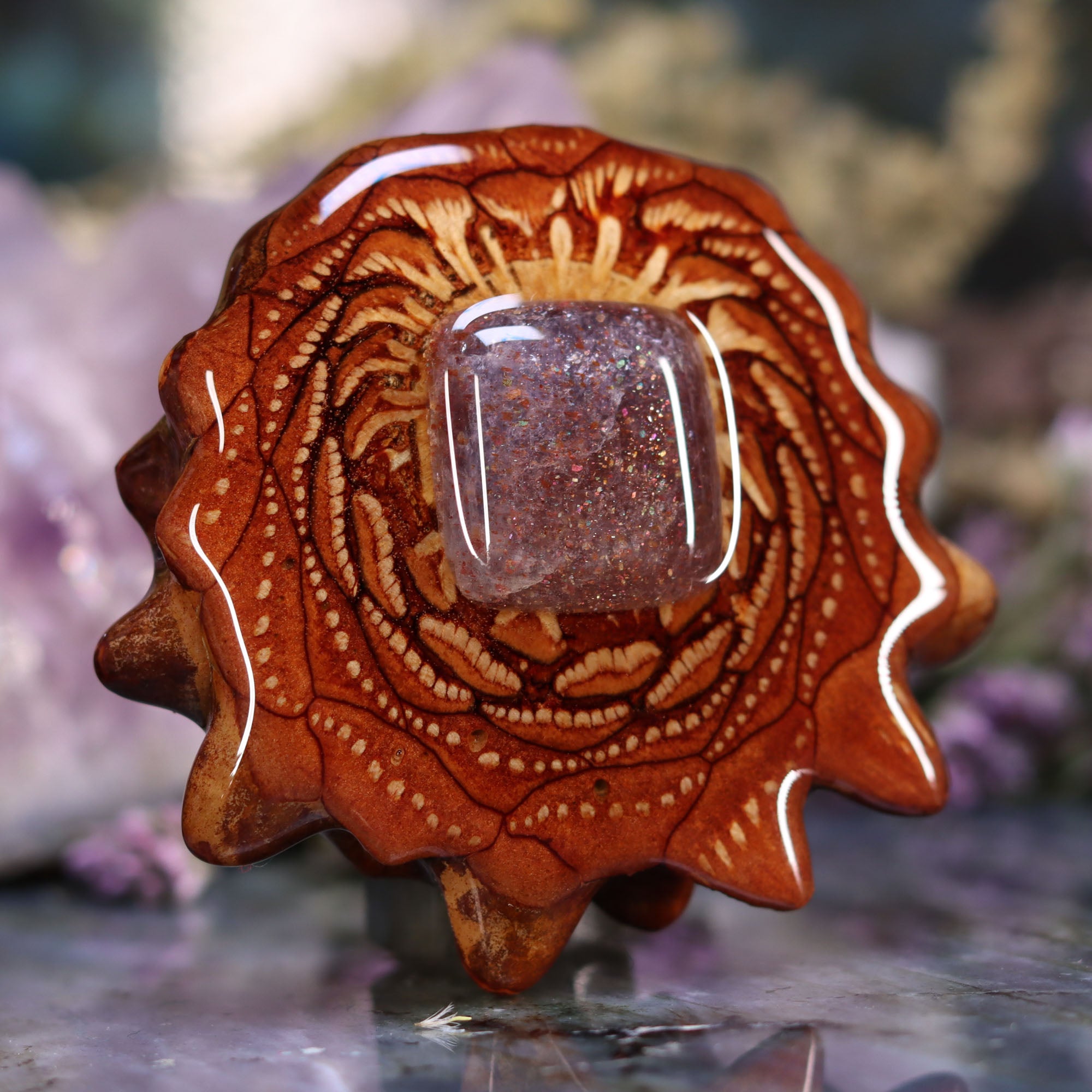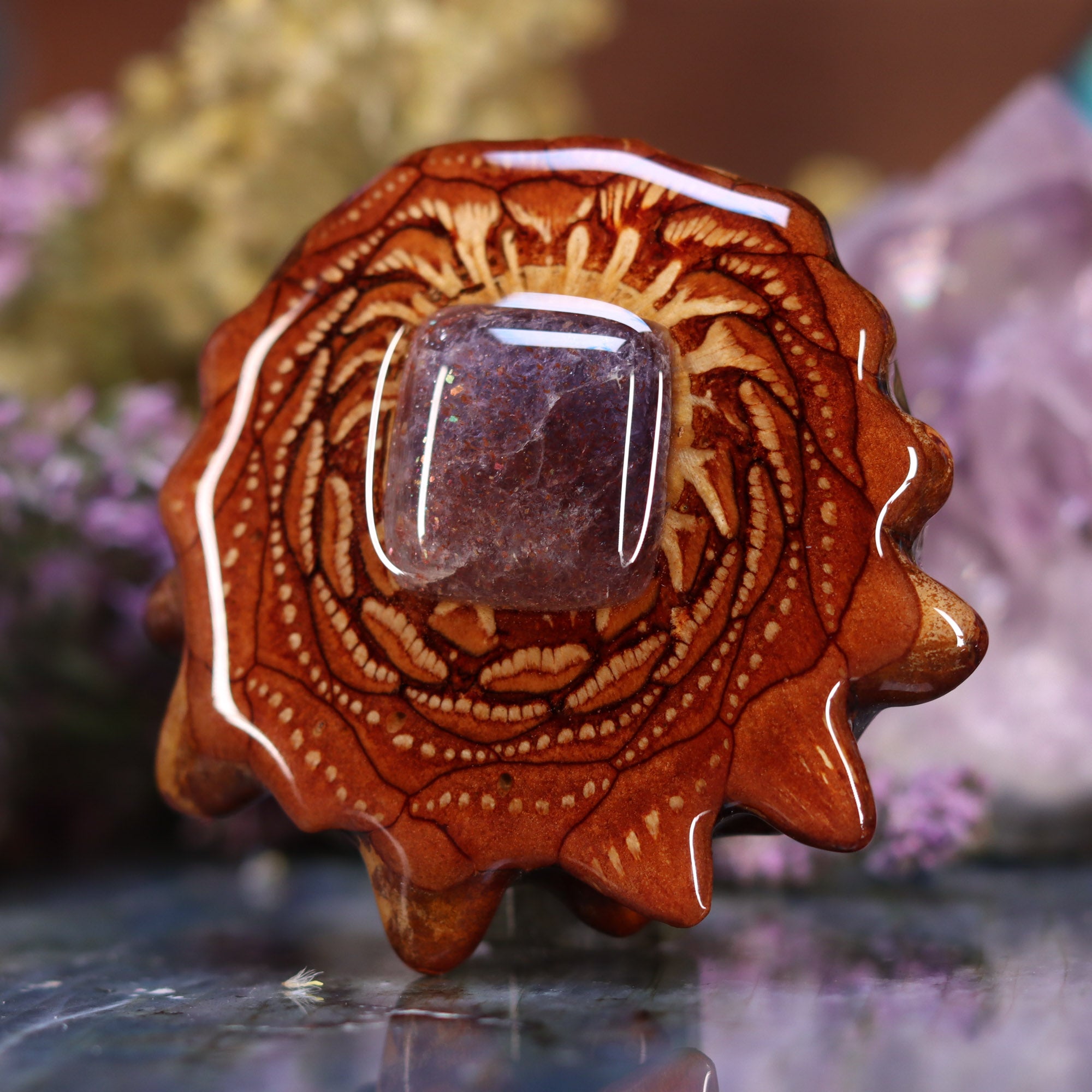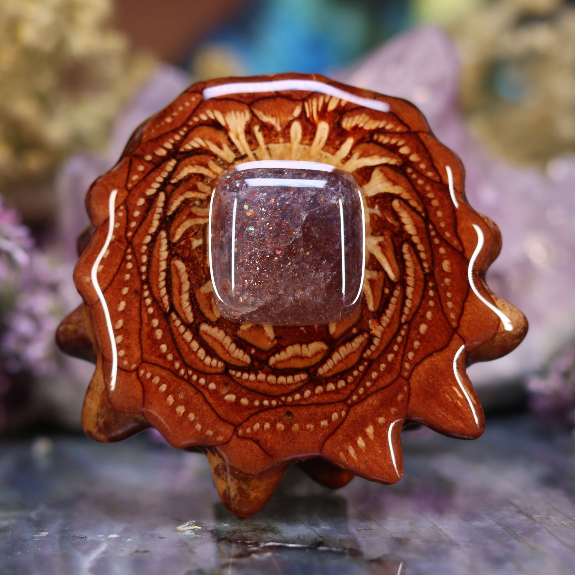 Known also as the “Crystal Compass” and “Shaman’s Sapphire” this potent stone synergizes the wind energy of Iolite and the fire of Sunstone, and is believed to inspire tremendous confidence and creativity. Shamanic practitioners have used Iolite Sunstone for generations to bring light onto the path of darkness, aiding in past life regressions, soul retrievals, and working with the shadow self. It is also thought to activate and energize lucid dreaming and awaken latent intuitive abilities.