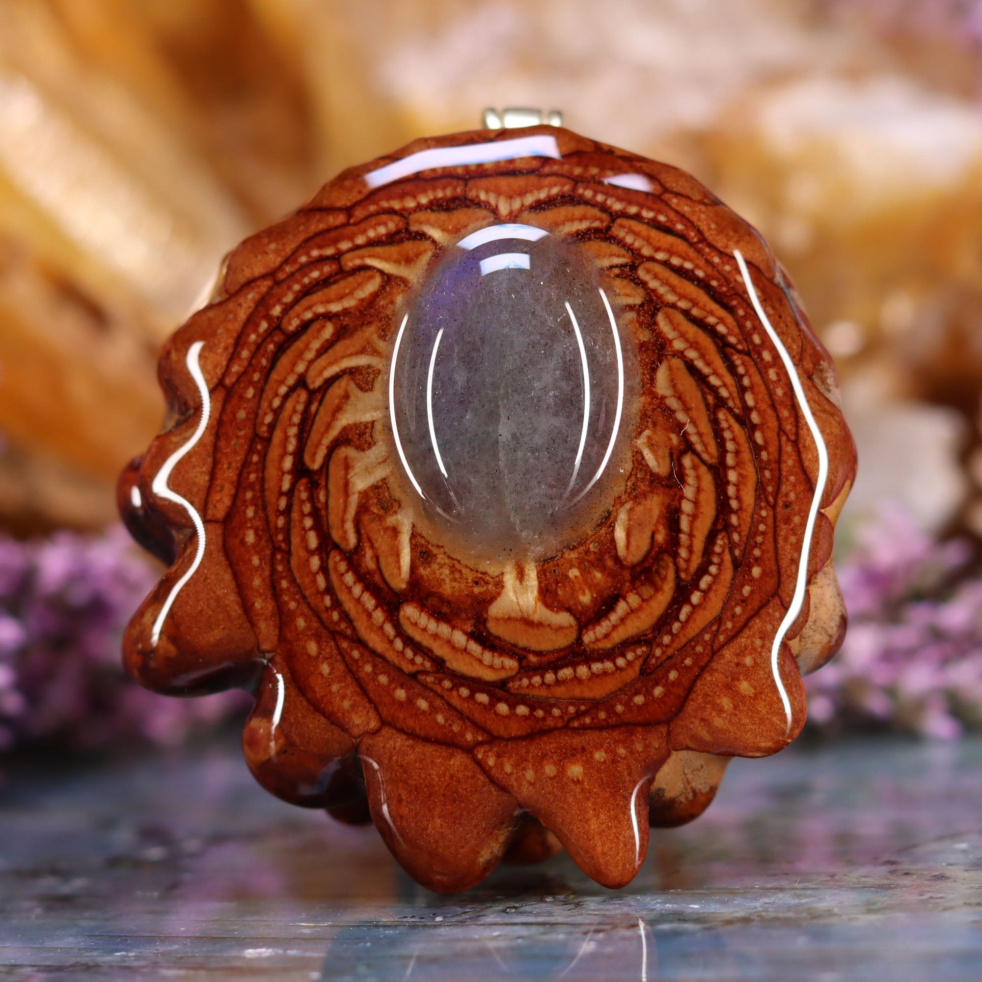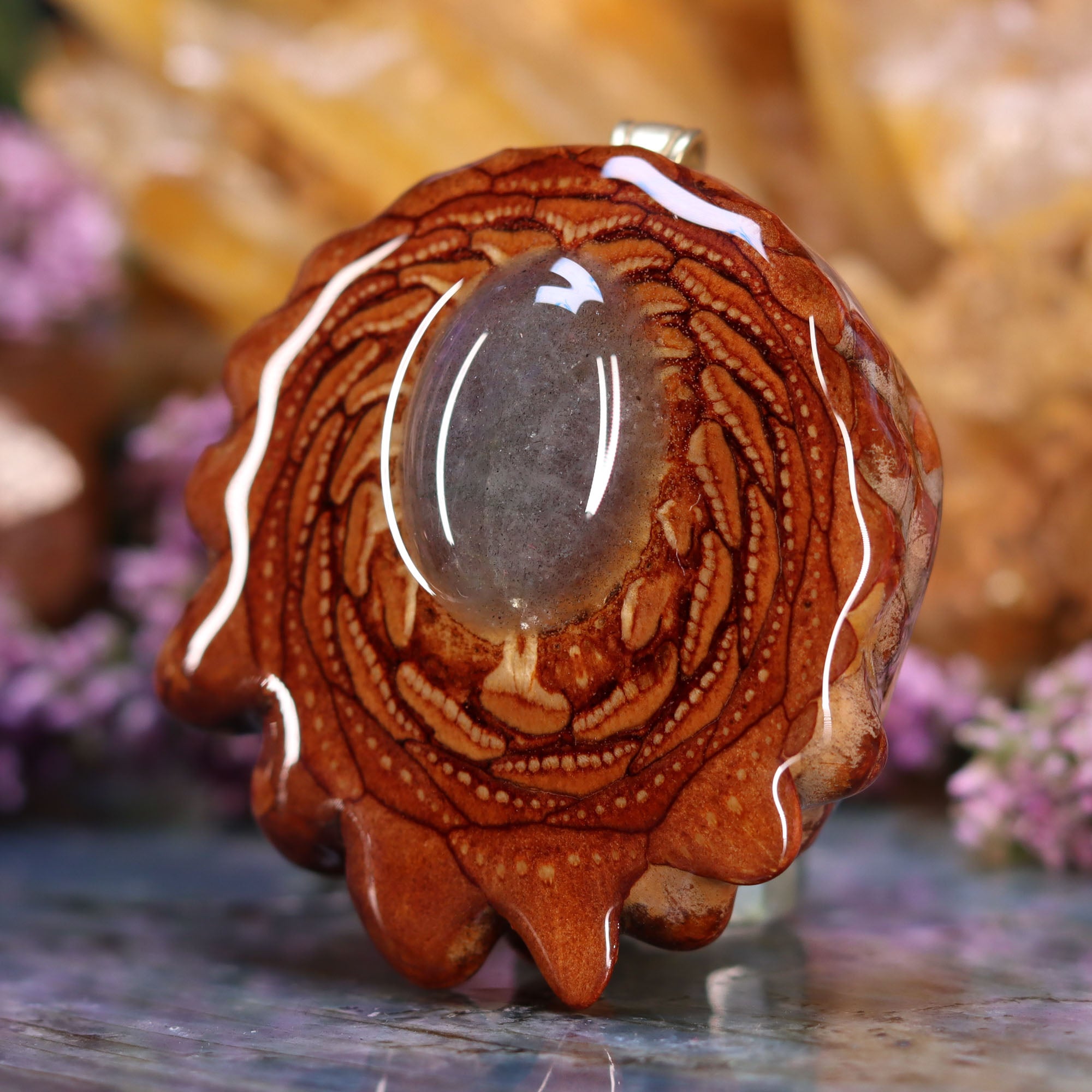 Every pinecone pendant is an elegant gift from Mother Nature -- unveiling the ornate Sacred Geometry hidden at the center of one of the world's densest Pinecones. Because only one cross-section is taken from the "heart" of each Cone, every pendant is absolutely unique, and truly one-of-a-kind.