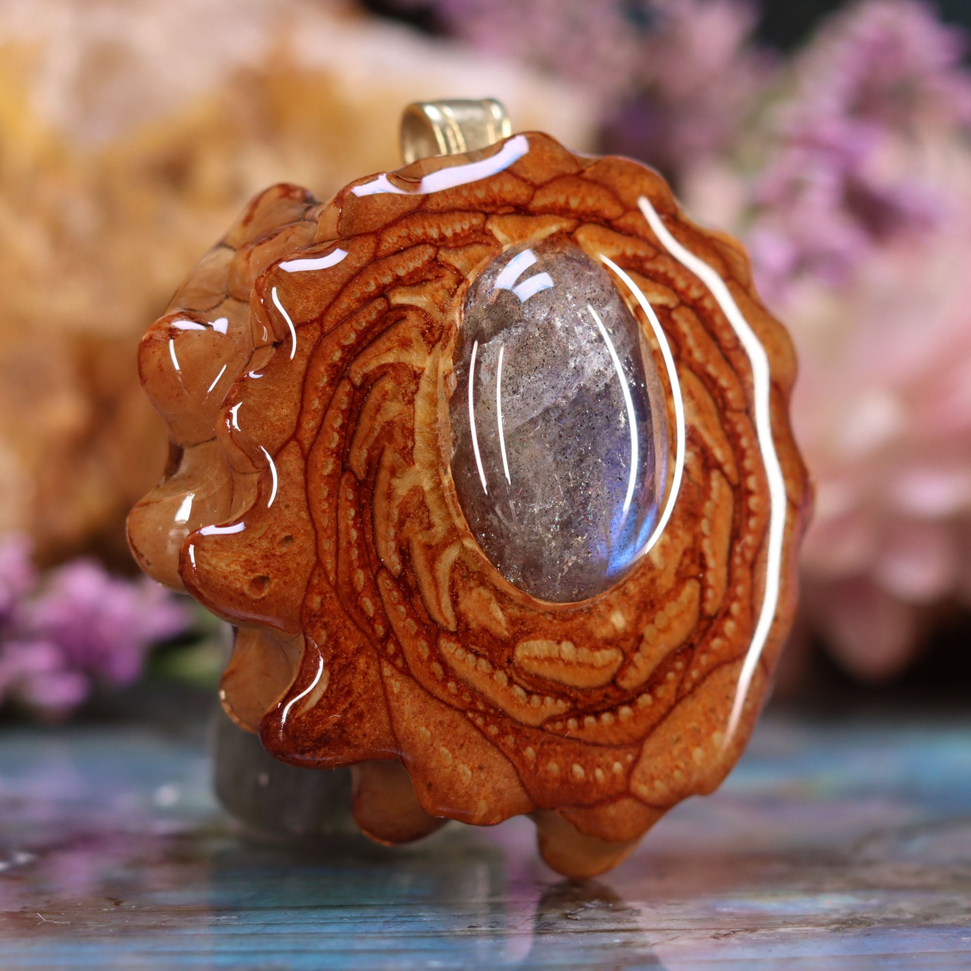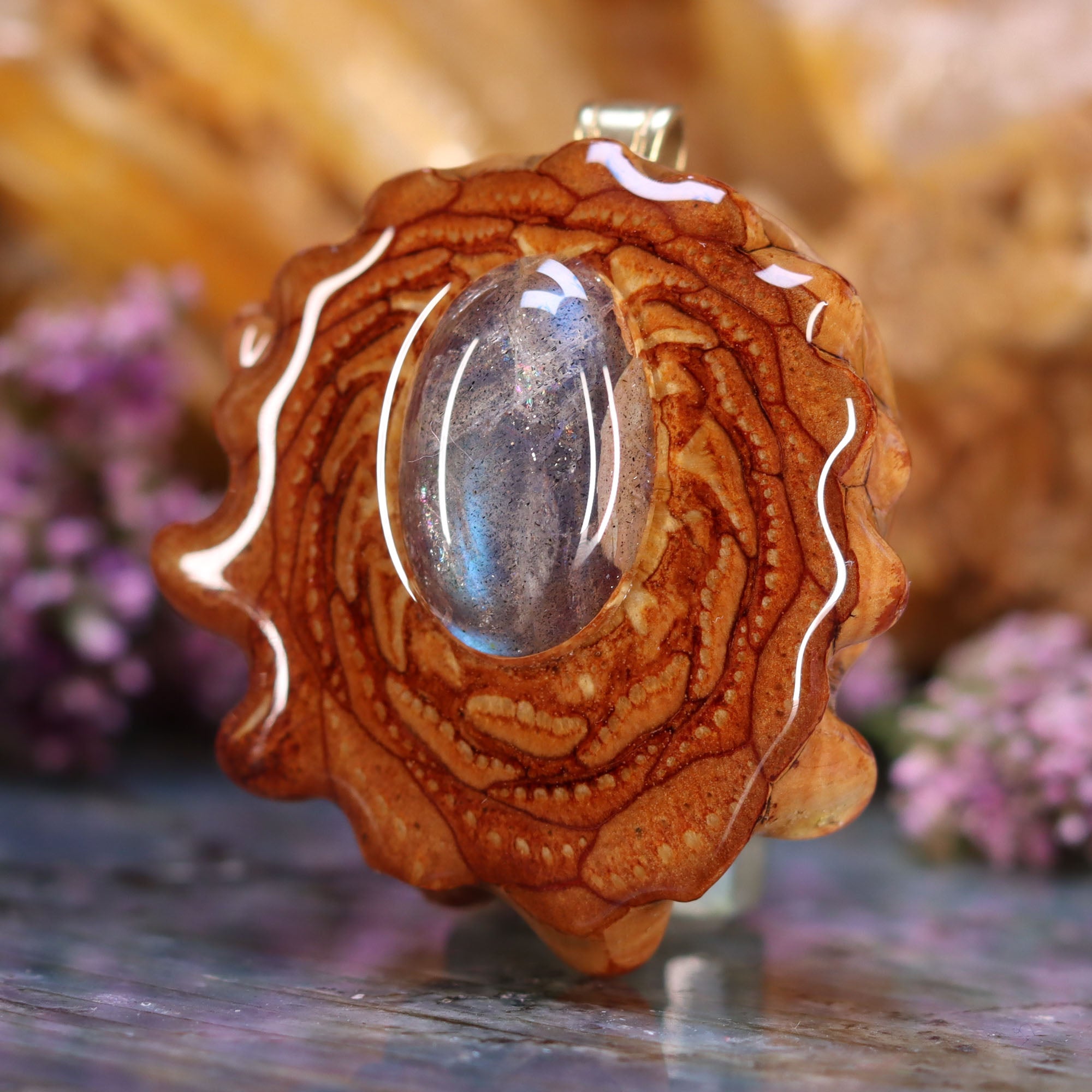 Every pinecone pendant is an elegant gift from Mother Nature -- unveiling the ornate Sacred Geometry hidden at the center of one of the world's densest Pinecones. Because only one cross-section is taken from the "heart" of each Cone, every pendant is absolutely unique, and truly one-of-a-kind.