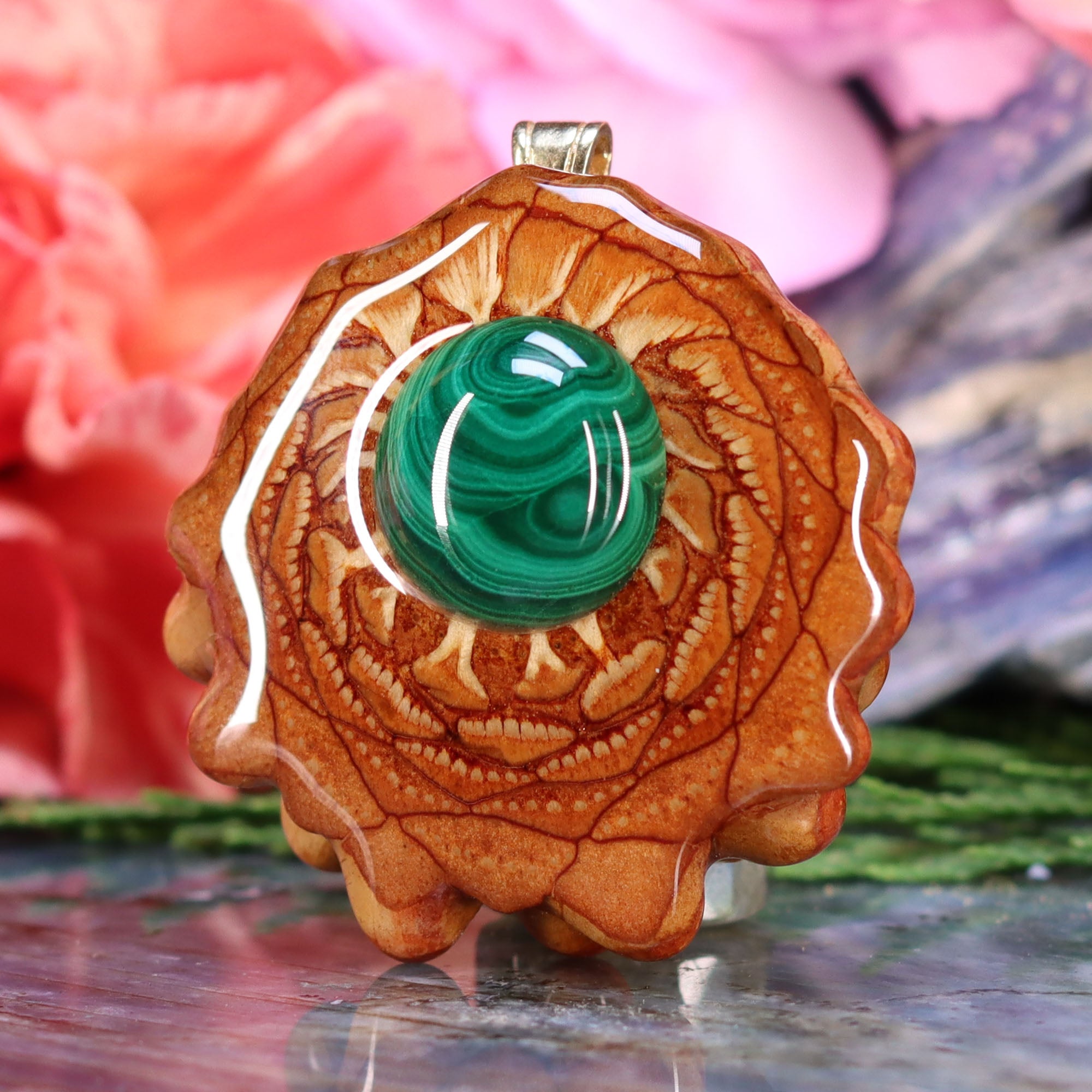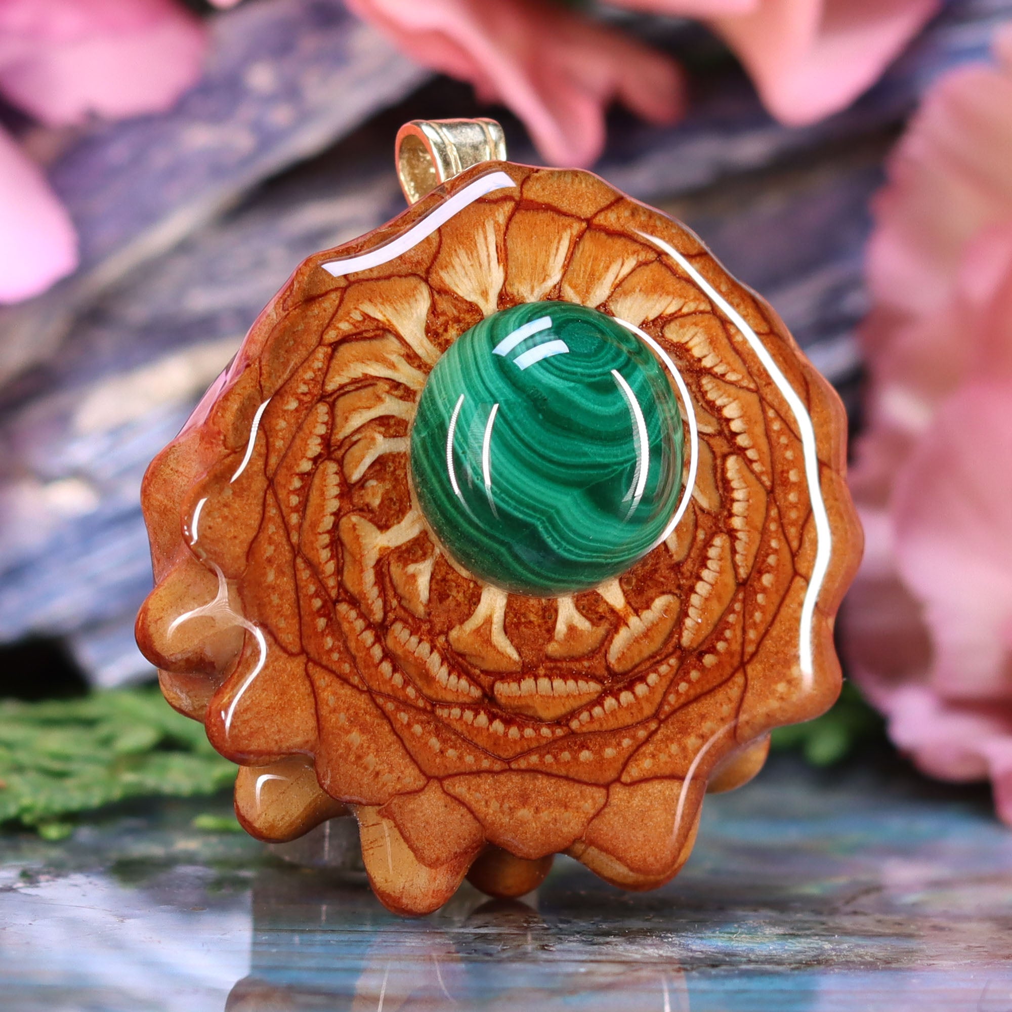 Every pinecone pendant is an elegant gift from Mother Nature -- unveiling the ornate Sacred Geometry hidden at the center of one of the world's densest Pinecones. Because only one cross-section is taken from the "heart" of each Cone, every pendant is absolutely unique, and truly one-of-a-kind.