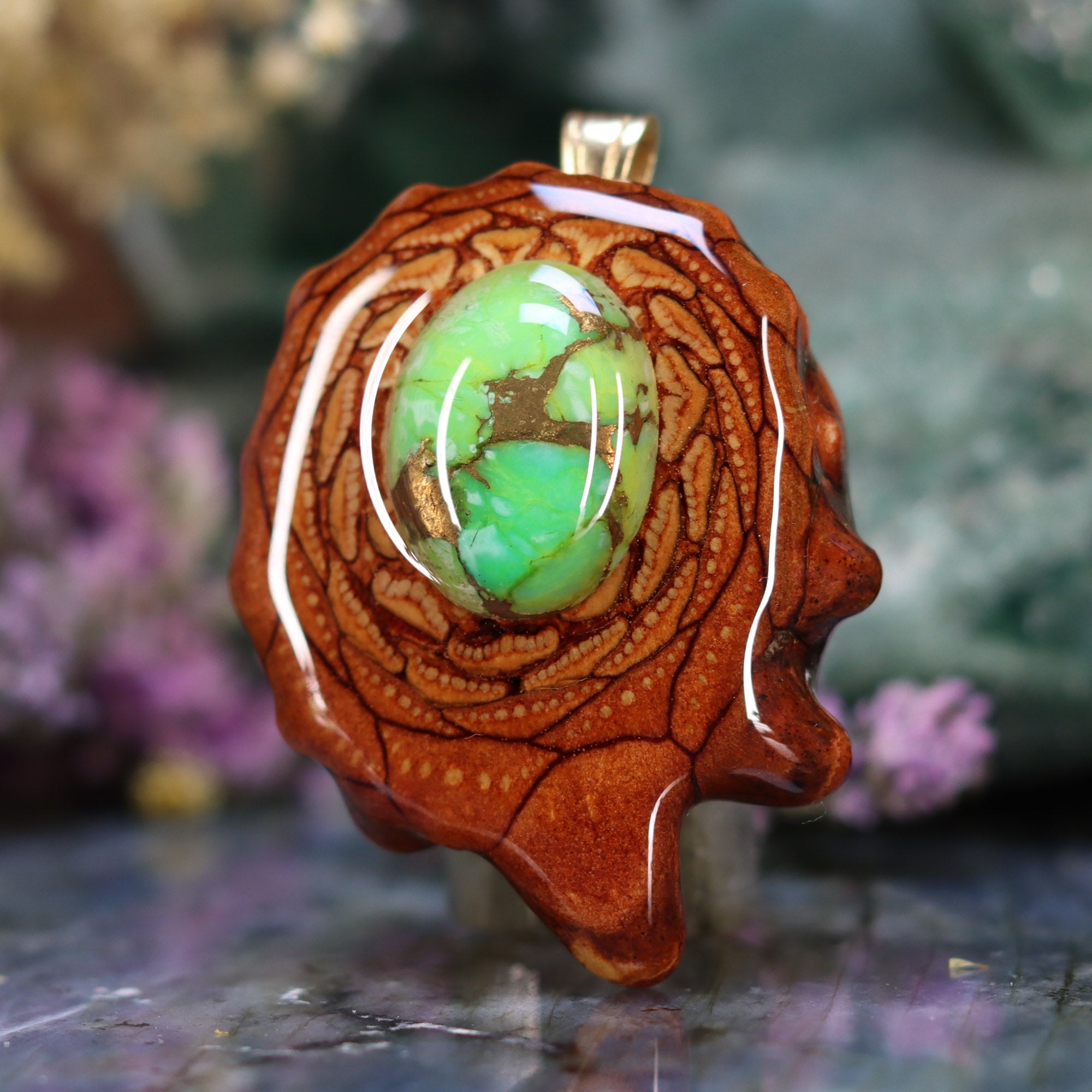Every pinecone pendant is an elegant gift from Mother Nature -- unveiling the ornate Sacred Geometry hidden at the center of one of the world's densest Pinecones. Because only one cross-section is taken from the "heart" of each Cone, every pendant is absolutely unique, and truly one-of-a-kind.