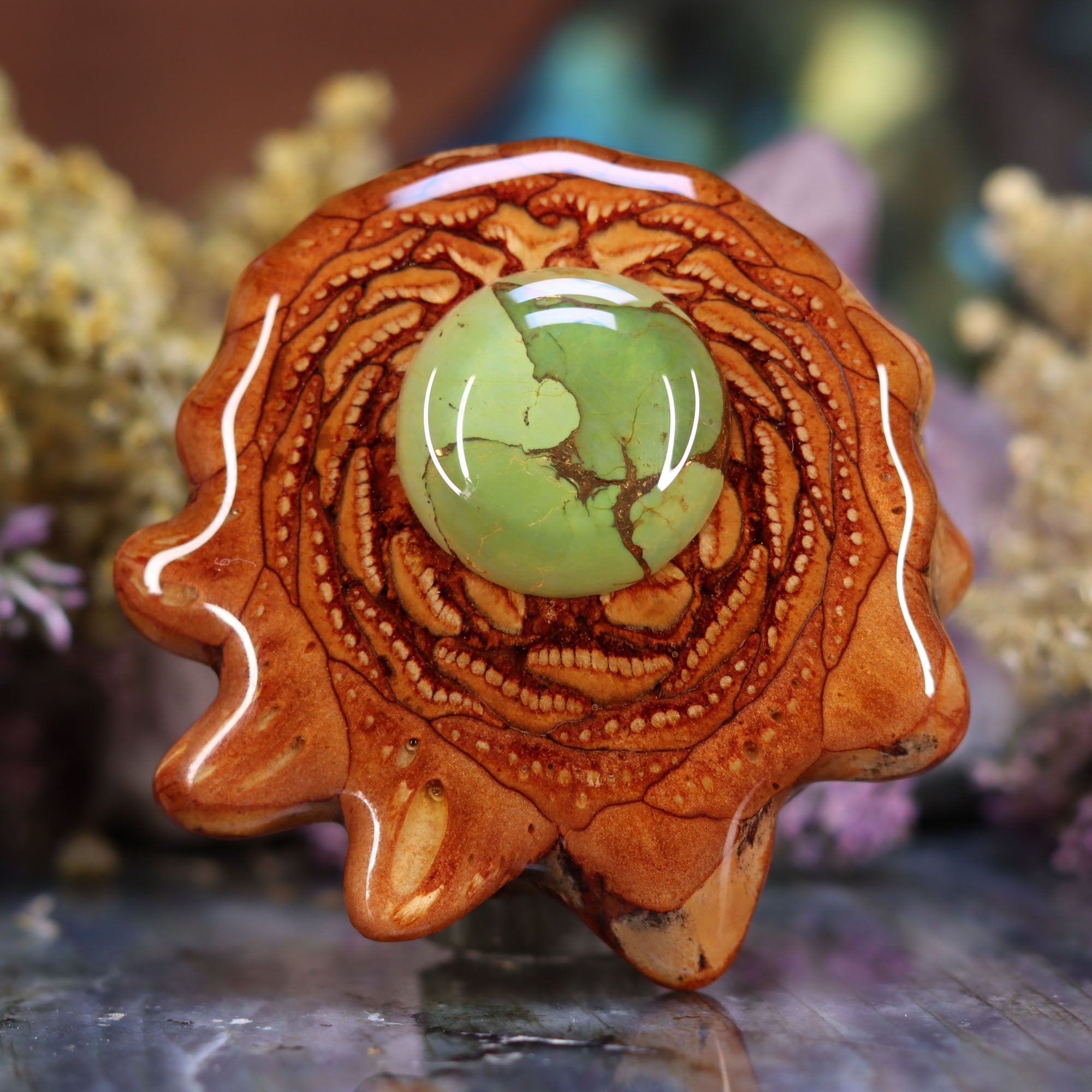 Every pinecone pendant is an elegant gift from Mother Nature -- unveiling the ornate Sacred Geometry hidden at the center of one of the world's densest Pinecones. Because only one cross-section is taken from the "heart" of each Cone, every pendant is absolutely unique, and truly one-of-a-kind.