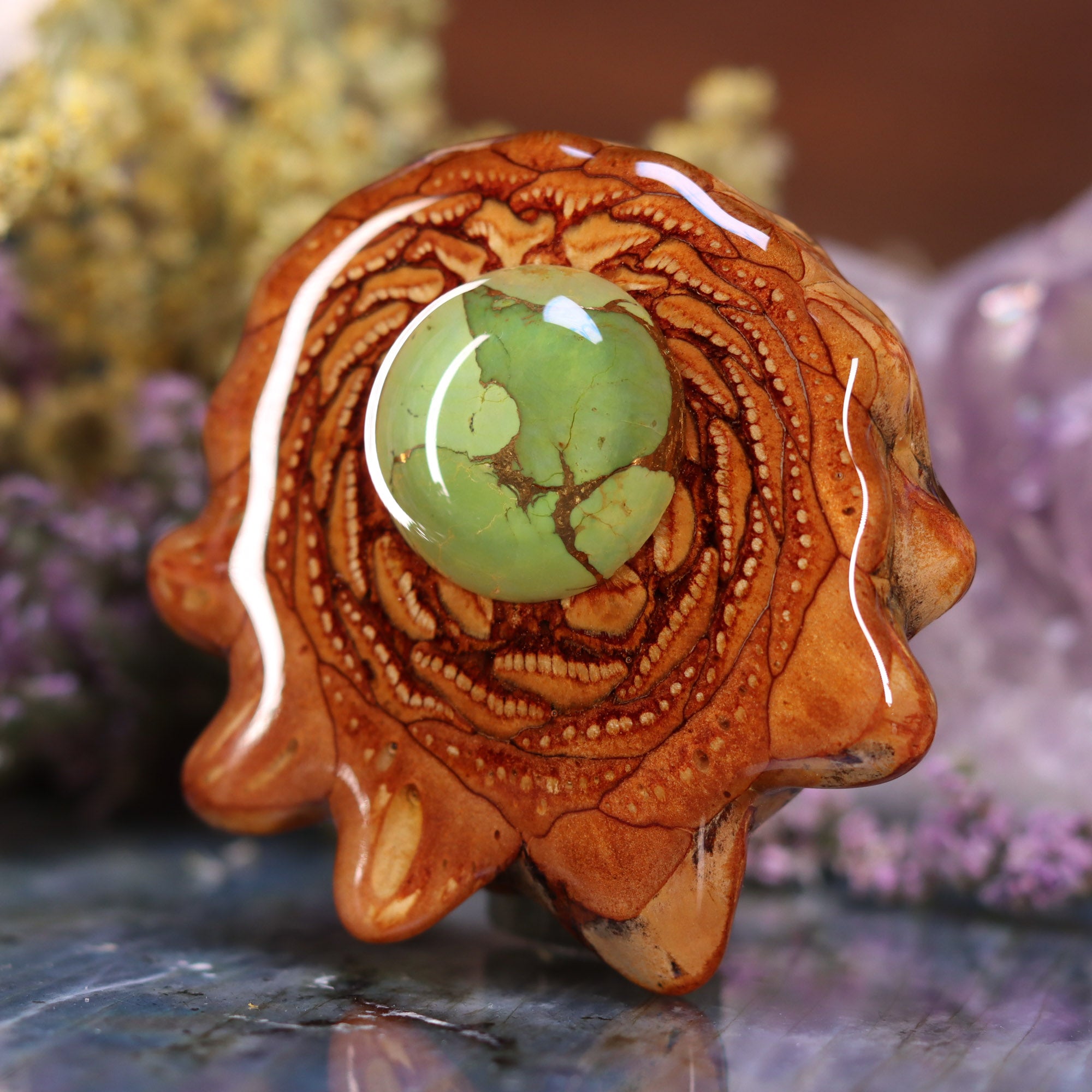 Regarded as a master healing stone, Turquoise is sacred to both Native American and oriental traditions. Its beautiful coloration is said to evoke the energy of heaven to arrive on earth, bringing with it abundance, grounding, and protection. It is also ideal for facilitating honest and clear communication from the heart.