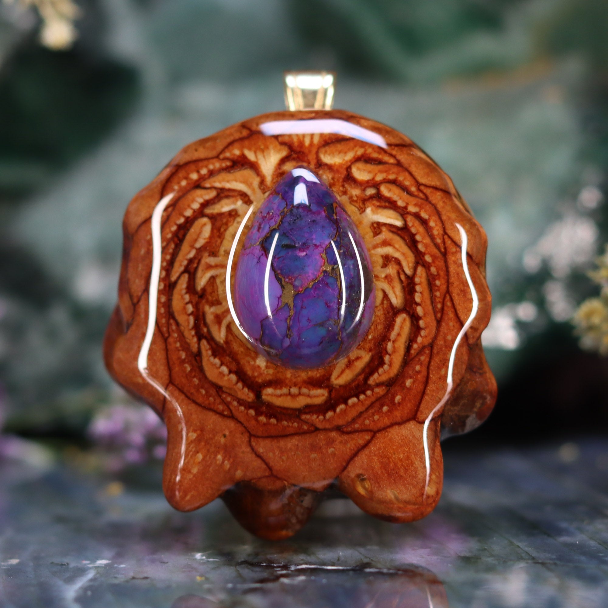 Every pinecone pendant is an elegant gift from Mother Nature -- unveiling the ornate Sacred Geometry hidden at the center of one of the world's densest Pinecones. Because only one cross-section is taken from the "heart" of each Cone, every pendant is absolutely unique, and truly one-of-a-kind.