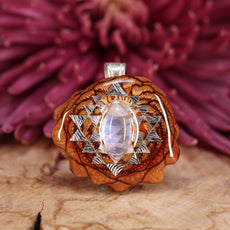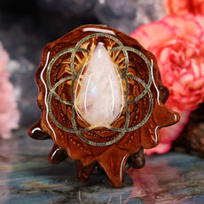 As its name suggests, Moonstone is strongly connected to the archetypal feminine energies of the moon, intuition, and empathy. It helps reconnect with the softness and wisdom of the great mother if one gets caught up in stress, fixation, or aggression. It is recognized as a powerful tool to make conscious the unconscious, and traditionally has been worn as a pendant to encourage the fruition of one's psychic gifts, as well as to facilitate lucid dreaming.
