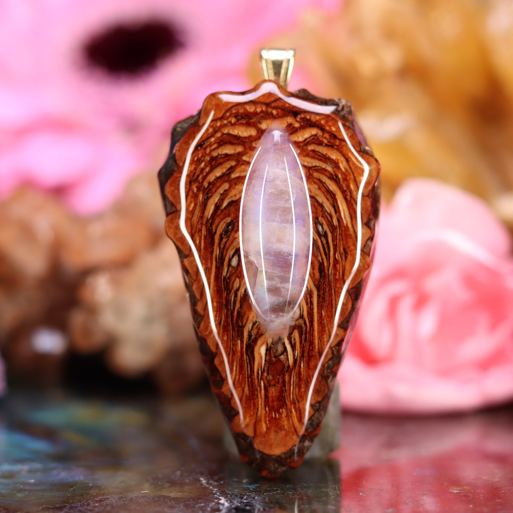 As its name suggests, Moonstone is strongly connected to the archetypal feminine energies of the moon, intuition, and empathy. It allows us to reconnect with the softness of the feminine, facilitating the letting go of stress, fixation, and aggression. Additionally, Moonstone is recognized as a powerful tool to make conscious what is unconscious, bringing ease to practices of mindfulness and higher consciousnesses.