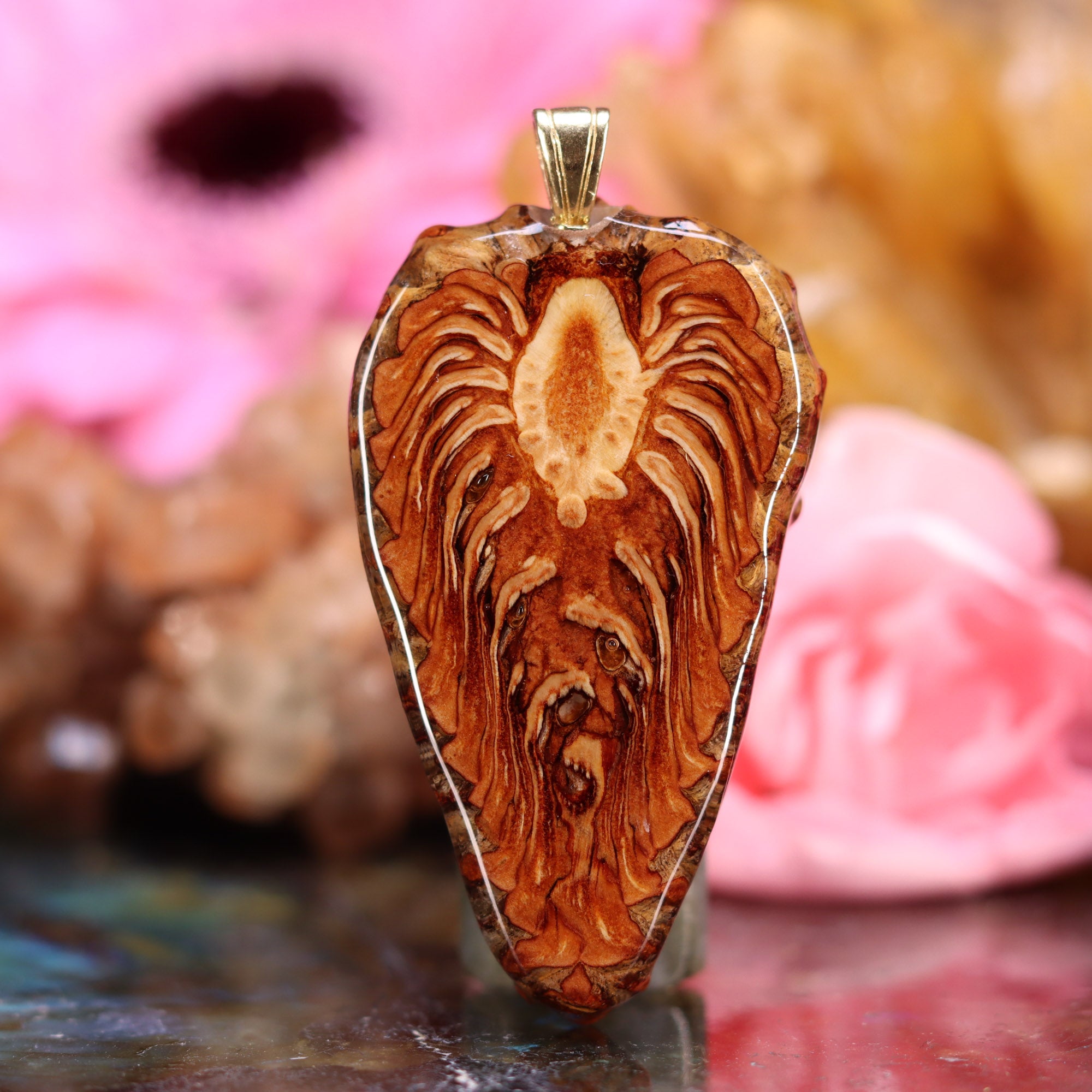 Every pinecone pendant is an elegant gift from Mother Nature -- unveiling the ornate Sacred Geometry hidden at the center of one of the world's densest Pinecones. Because only one cross-section is taken from the "heart" of each Cone, every pendant is absolutely unique, and truly one-of-a-kind.