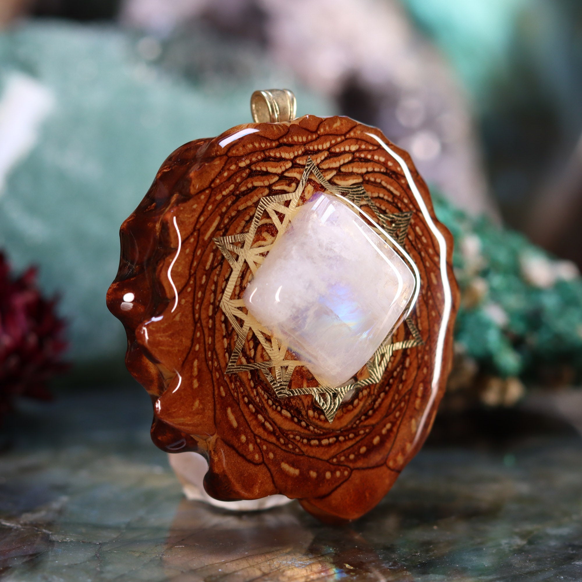 Moonstone with Gold 64 Star Tetrahedron