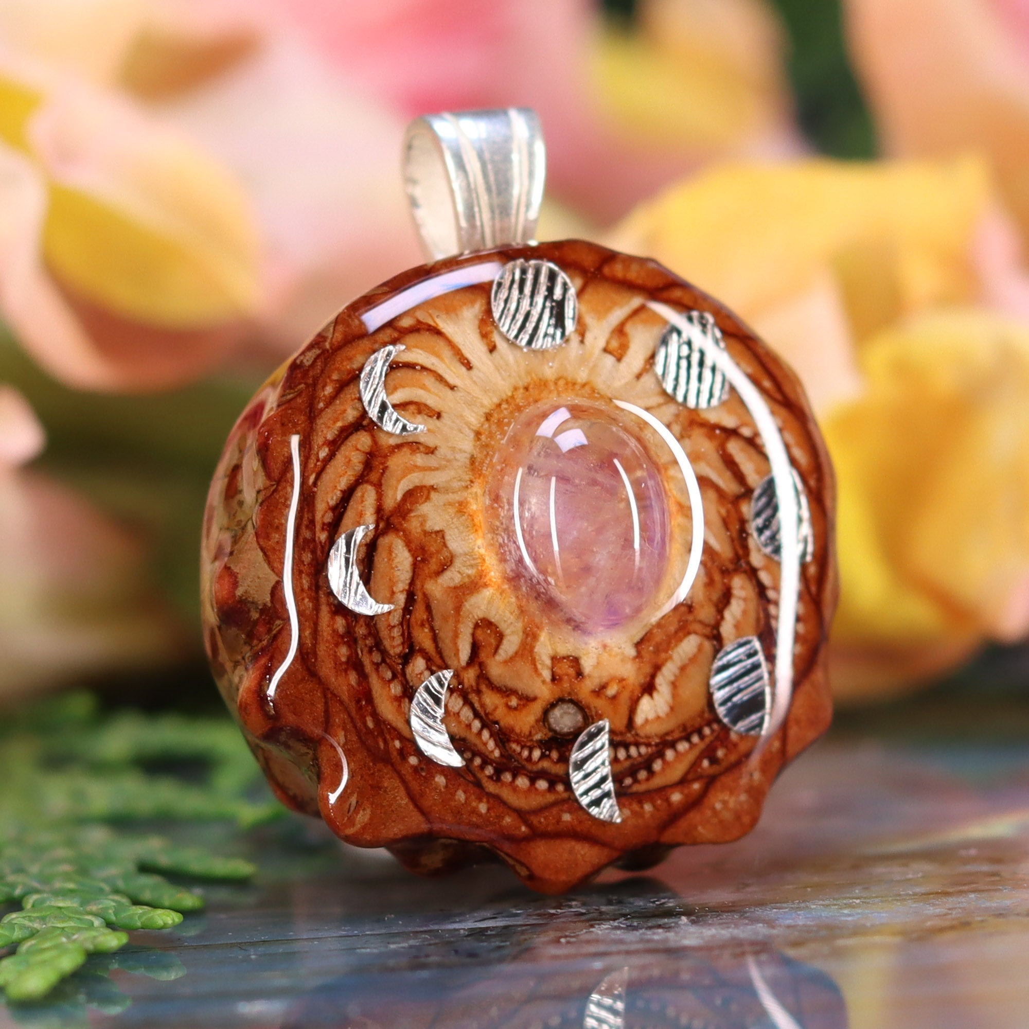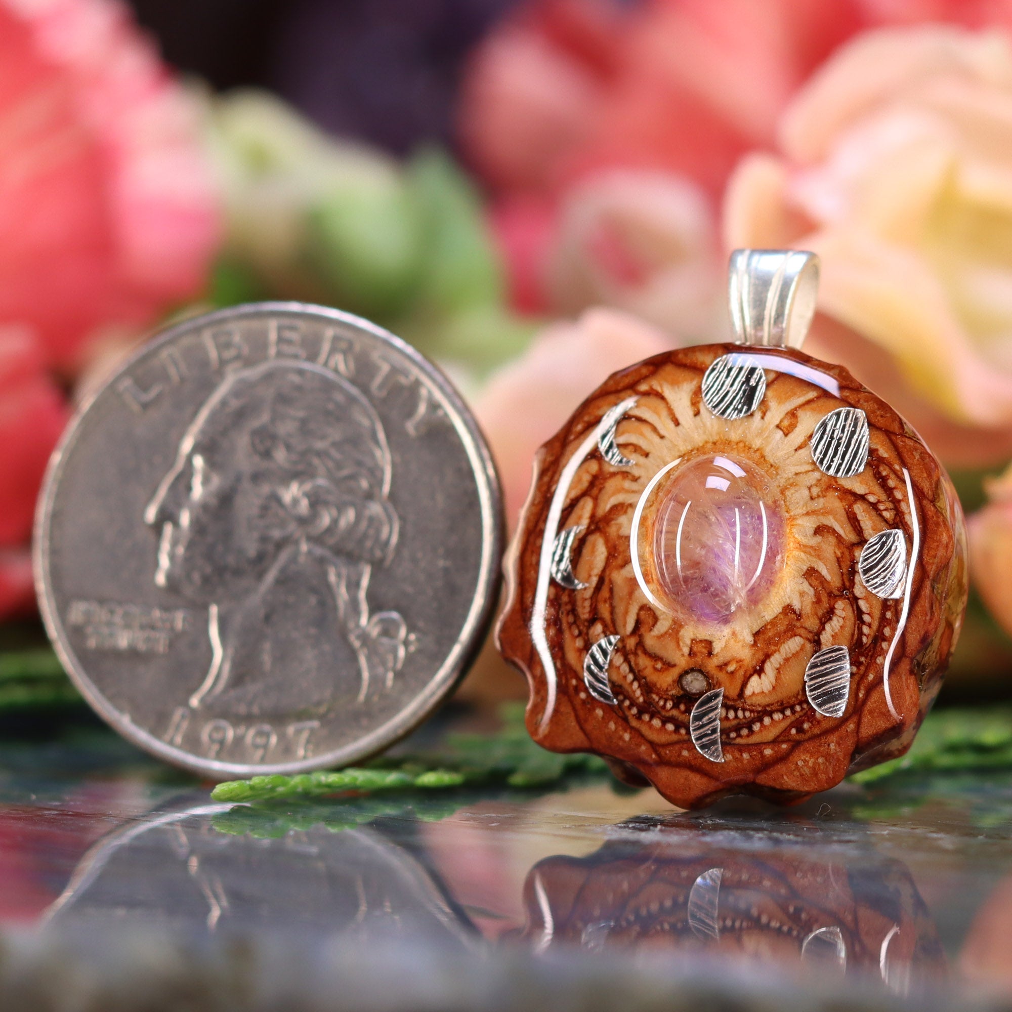 This Pinecone has been blessed with the Moon Cycles, cast in Sterling Silver. The moon has long been held as a sacred symbol for rebirth and change with each phase bringing new opportunities for growth.