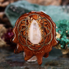 As its name suggests, Moonstone is strongly connected to the archetypal feminine energies of the moon, intuition, and empathy. It helps reconnect with the softness and wisdom of the great mother if one gets caught up in stress, fixation, or aggression. It is recognized as a powerful tool to make conscious the unconscious, and traditionally has been worn as a pendant to encourage the fruition of one's psychic gifts, as well as to facilitate lucid dreaming.