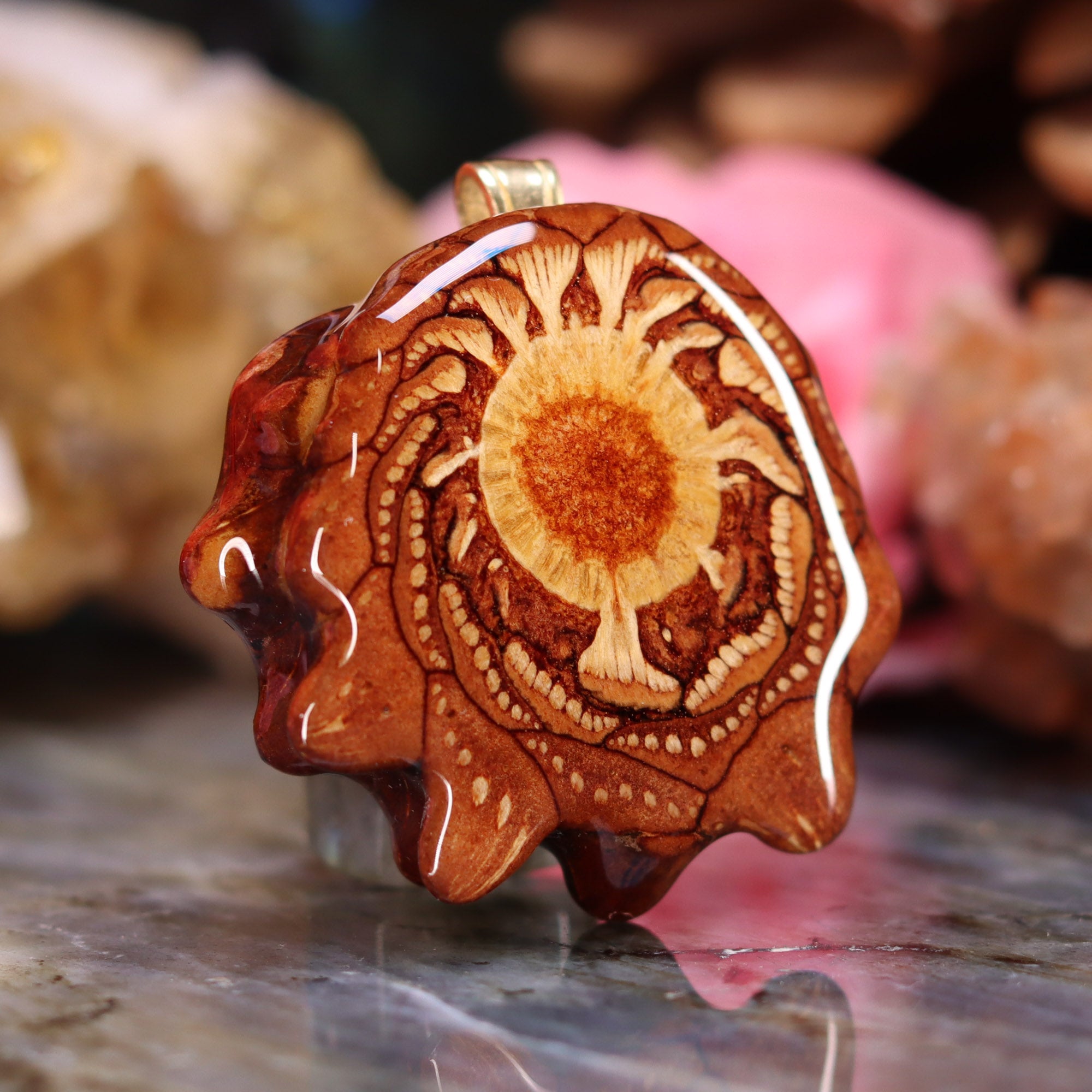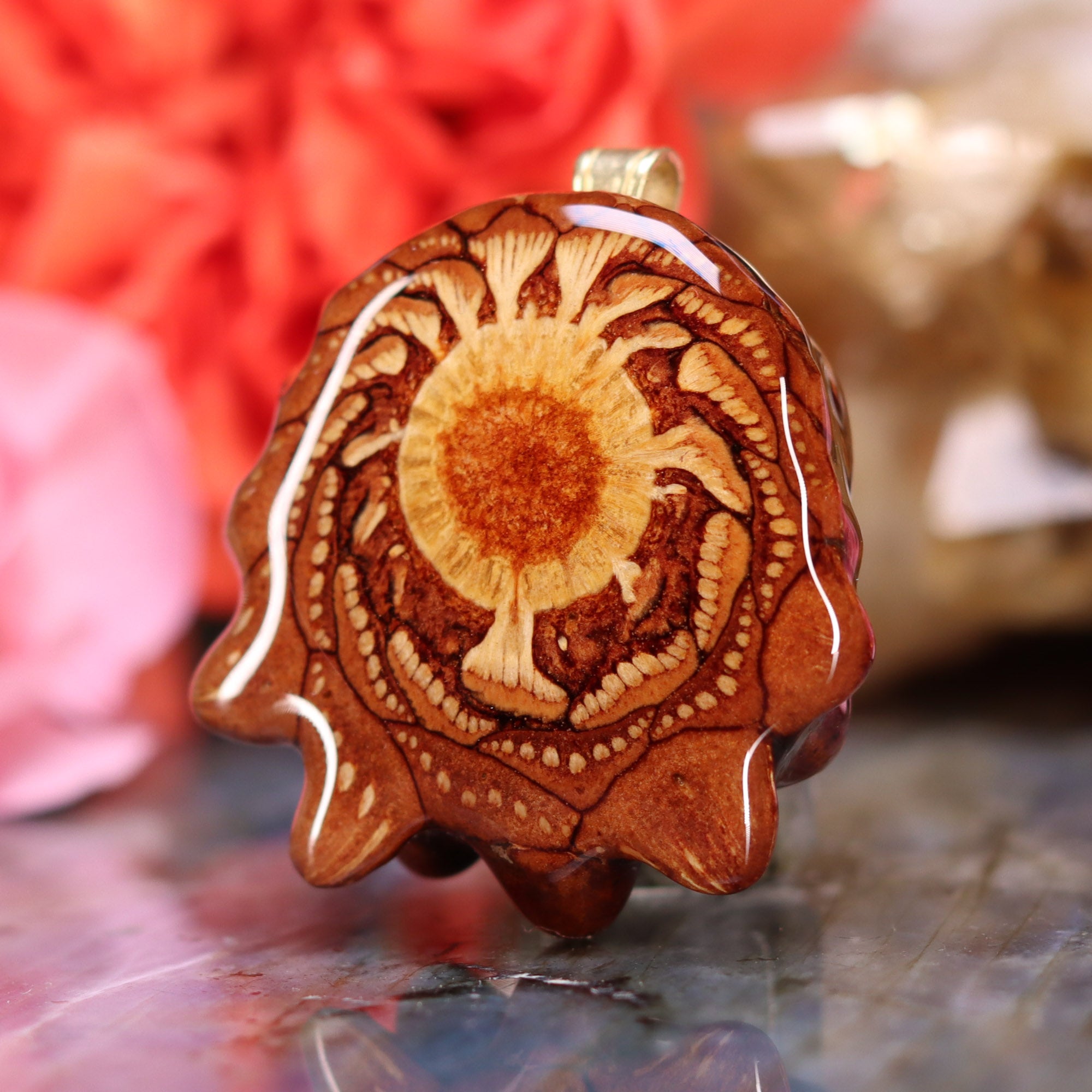 Every pinecone pendant is an elegant gift from Mother Nature -- unveiling the ornate Sacred Geometry hidden at the center of the world's densest Pinecone. Because only one cross-section is taken from the "heart" of each Cone, every pendant is absolutely unique, and truly the one-of-a-kind.