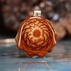 Every pinecone pendant is an elegant gift from Mother Nature -- unveiling the ornate Sacred Geometry hidden at the center of the world's densest Pinecone. Because only one cross-section is taken from the "heart" of each Cone, every pendant is absolutely unique, and truly the one-of-a-kind.