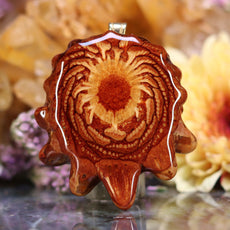 Every pinecone pendant is an elegant gift from Mother Nature -- unveiling the ornate Sacred Geometry hidden at the center of one of the world's densest Pinecones. Because only one cross-section is taken from the "heart" of each Cone, every pendant is absolutely unique, and truly one-of-a-kind.