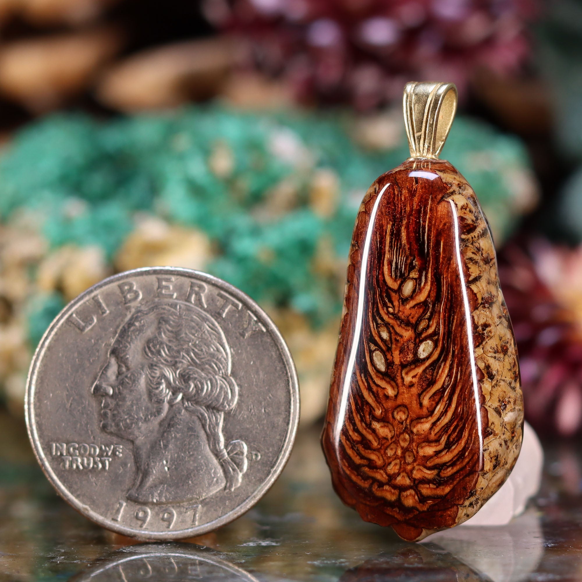 Our *new* Teardrop-style pendants reveal an elegant, angular pattern, only visible within the diagonal cross-section of specifically-shaped Pinecones. Due to the beautiful, diverse patterns displayed on both the front and back of these unique pendants, we’ve photographed both sides of these truly “reversible” new designs!