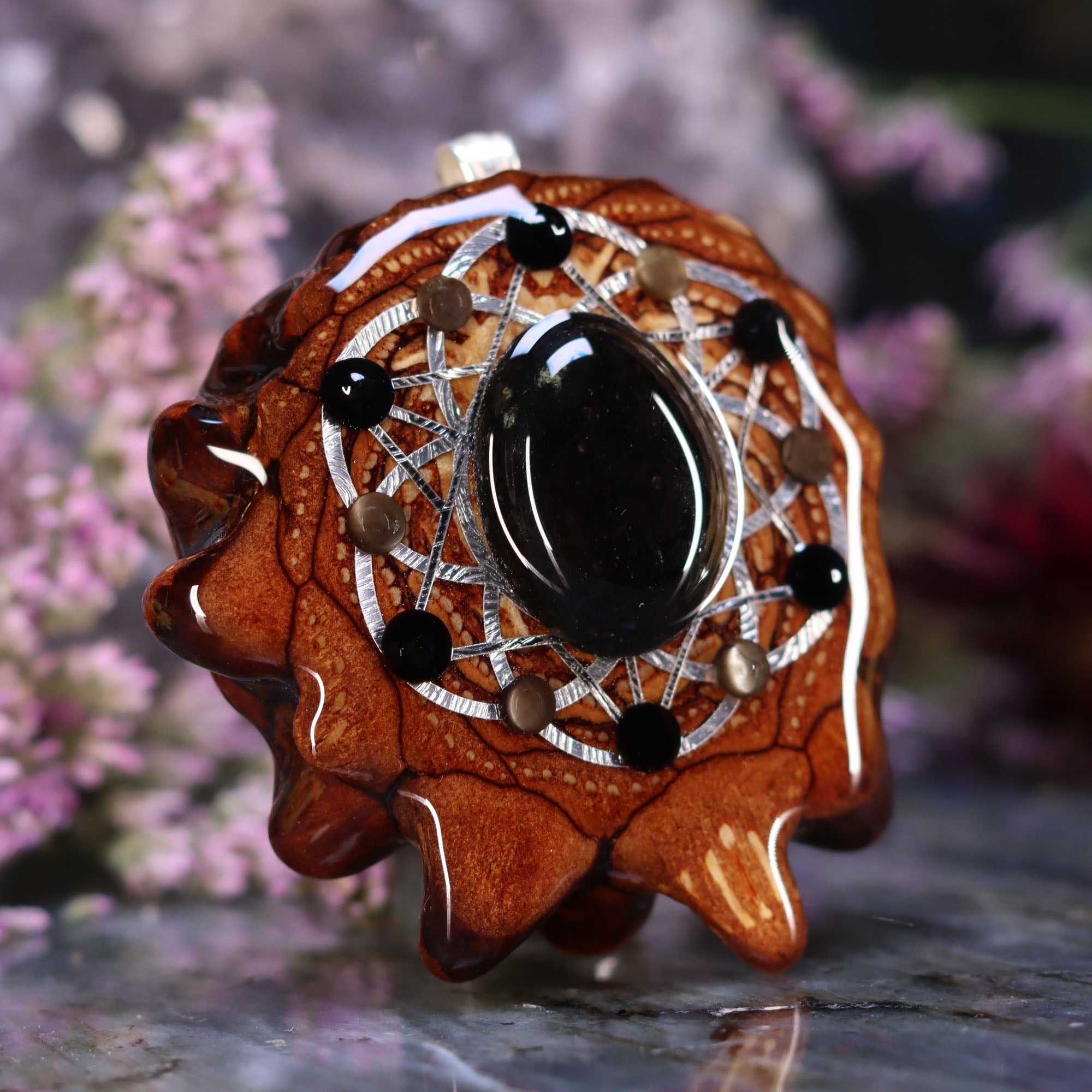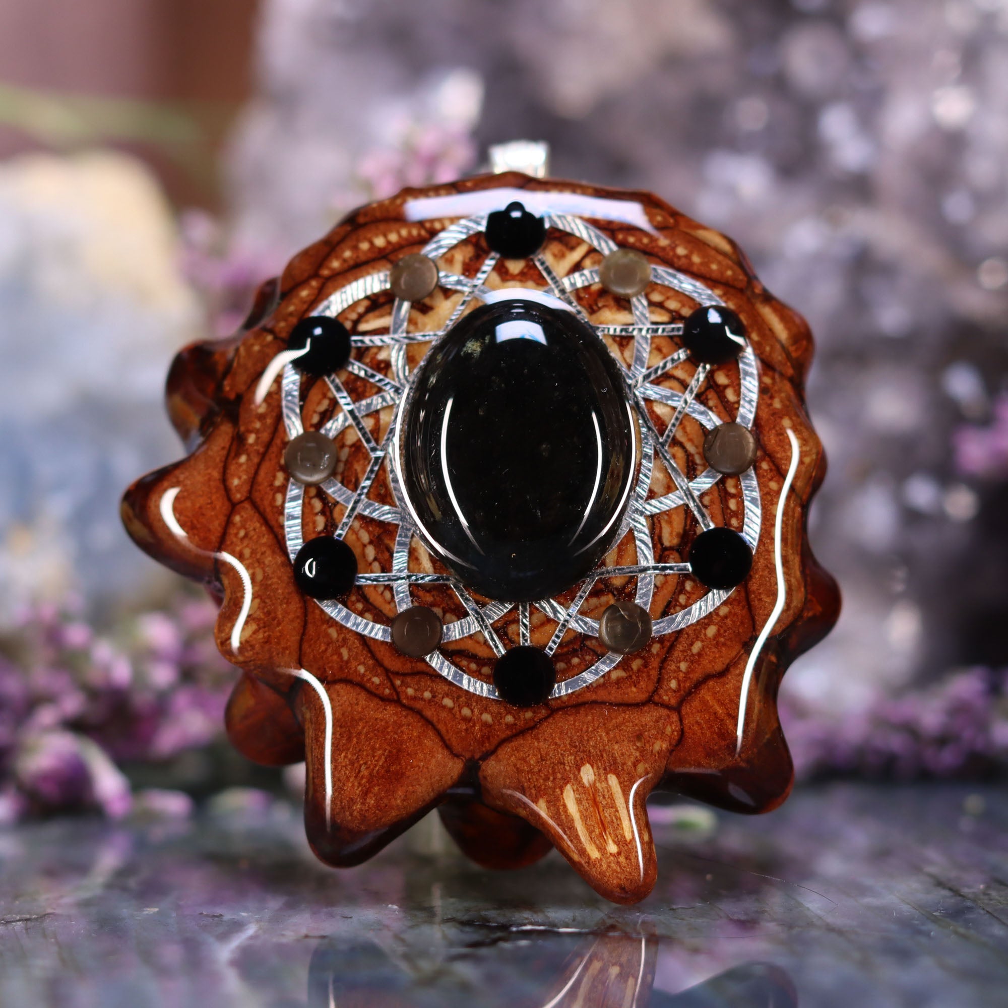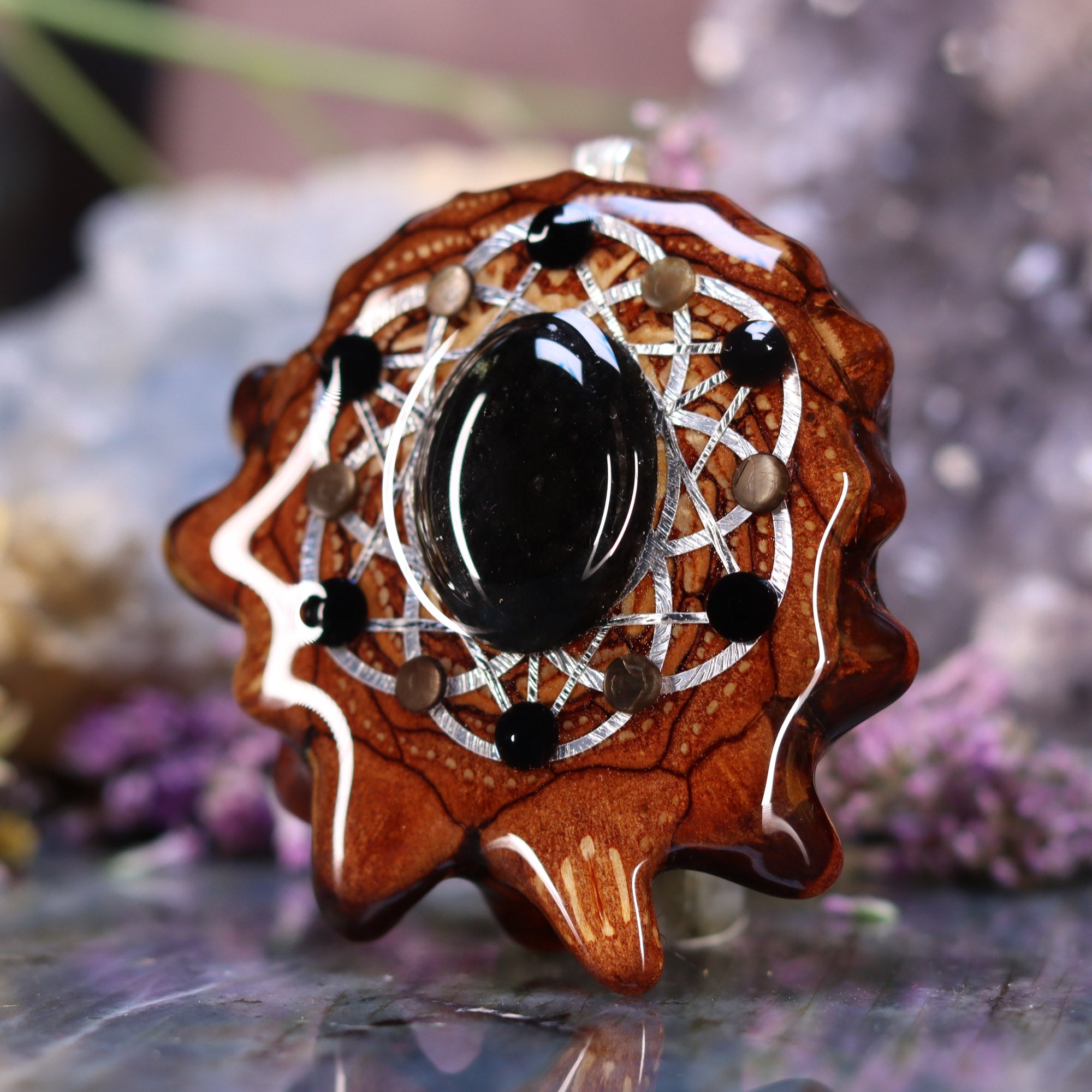 Every pinecone pendant is an elegant gift from Mother Nature -- unveiling the ornate Sacred Geometry hidden at the center of one of the world's densest Pinecones. Because only one cross-section is taken from the "heart" of each Cone, every pendant is absolutely unique, and truly one-of-a-kind.