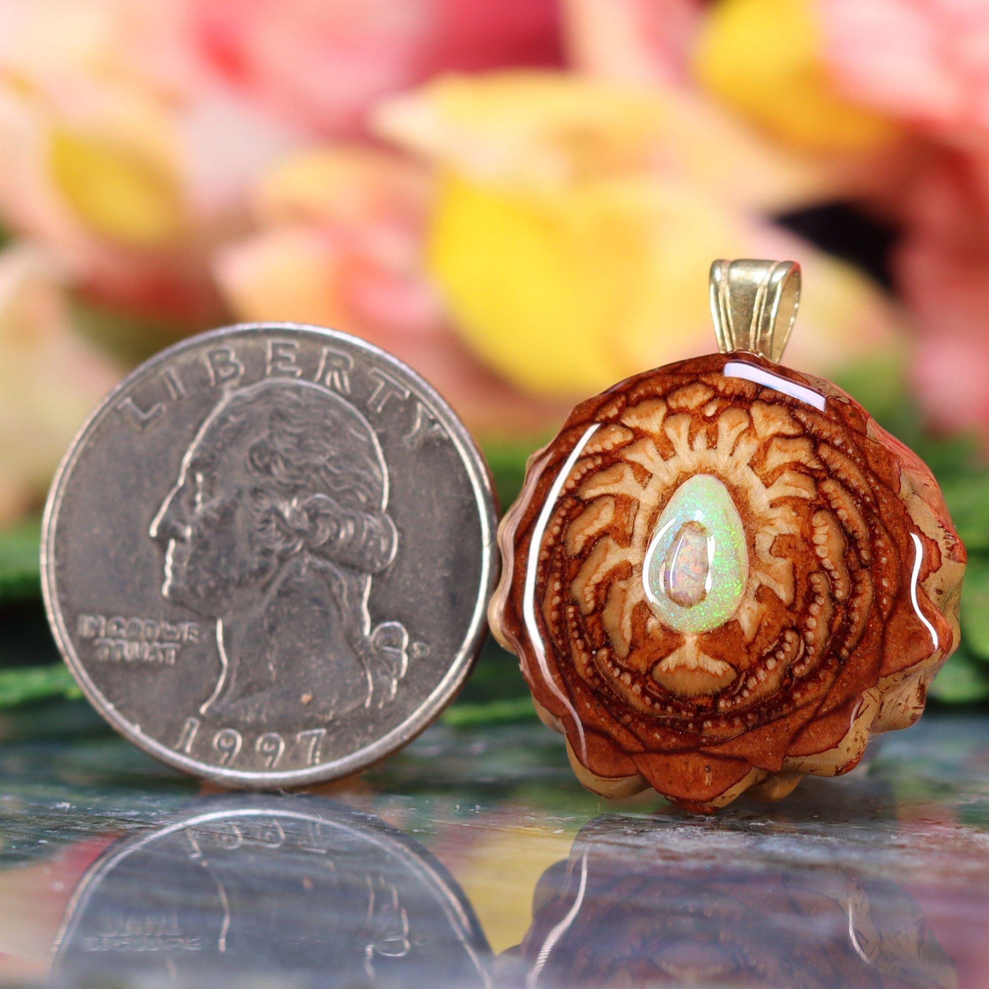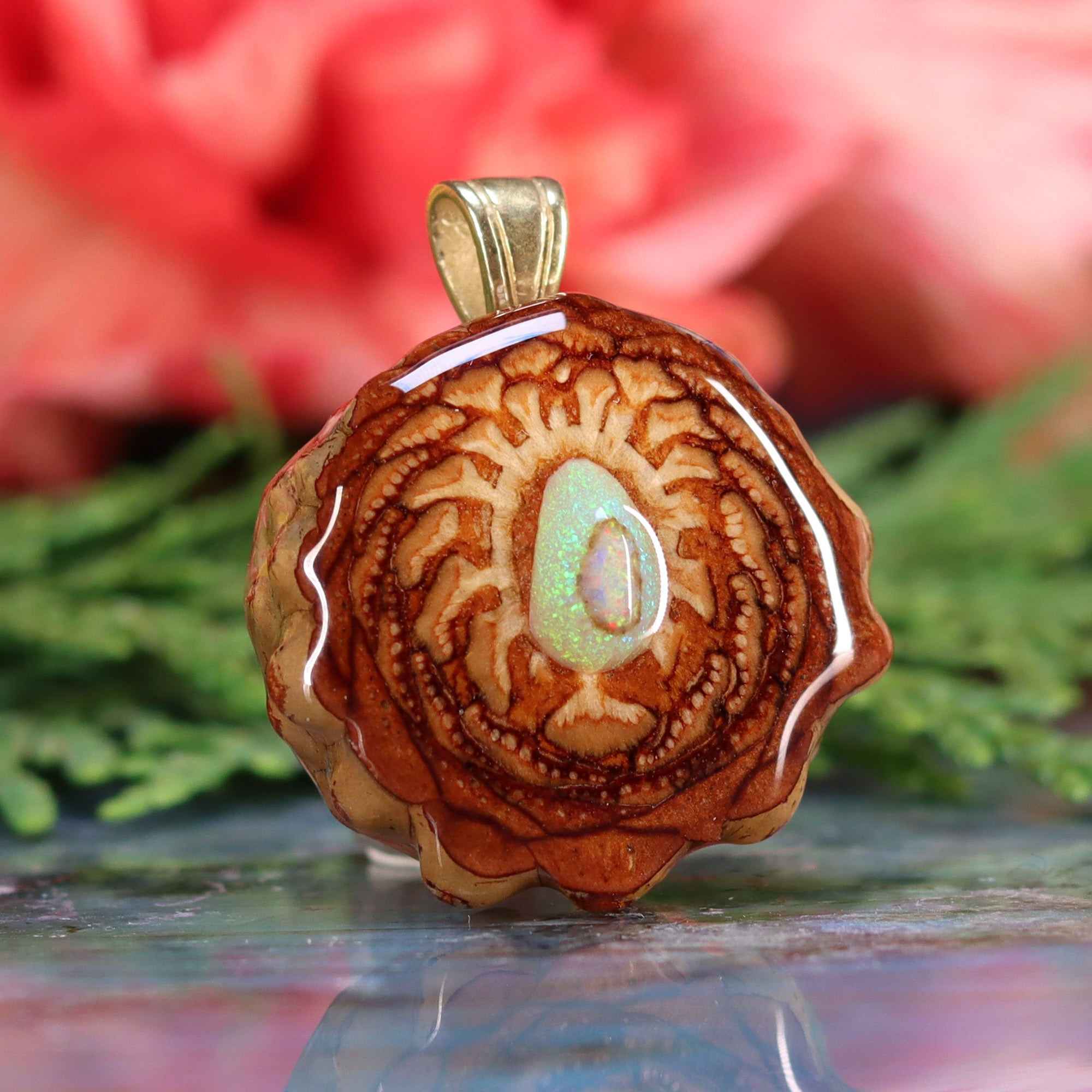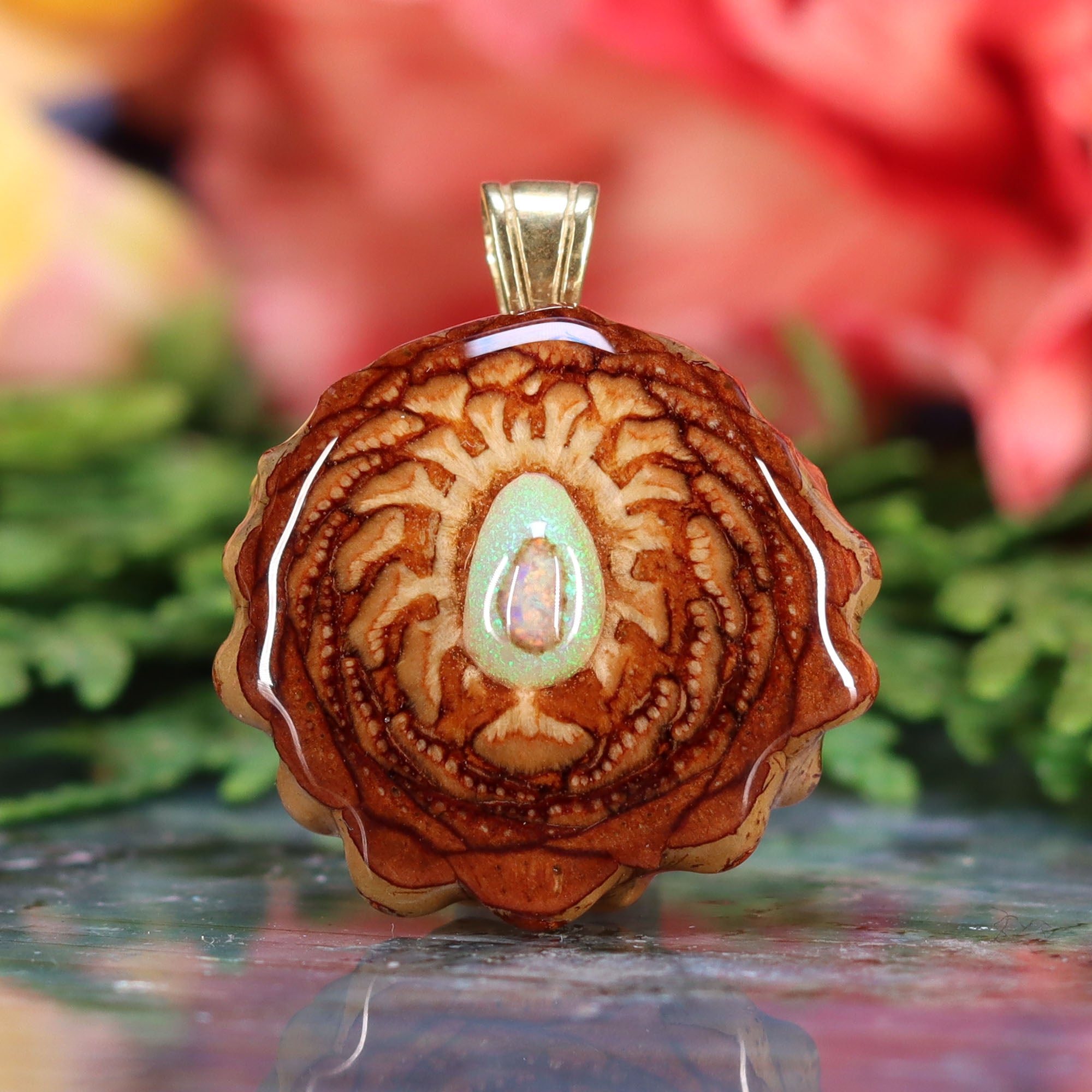 Every pinecone pendant is an elegant gift from Mother Nature -- unveiling the ornate Sacred Geometry hidden at the center of one of the world's densest Pinecones. Because only one cross-section is taken from the "heart" of each Cone, every pendant is absolutely unique, and truly one-of-a-kind.