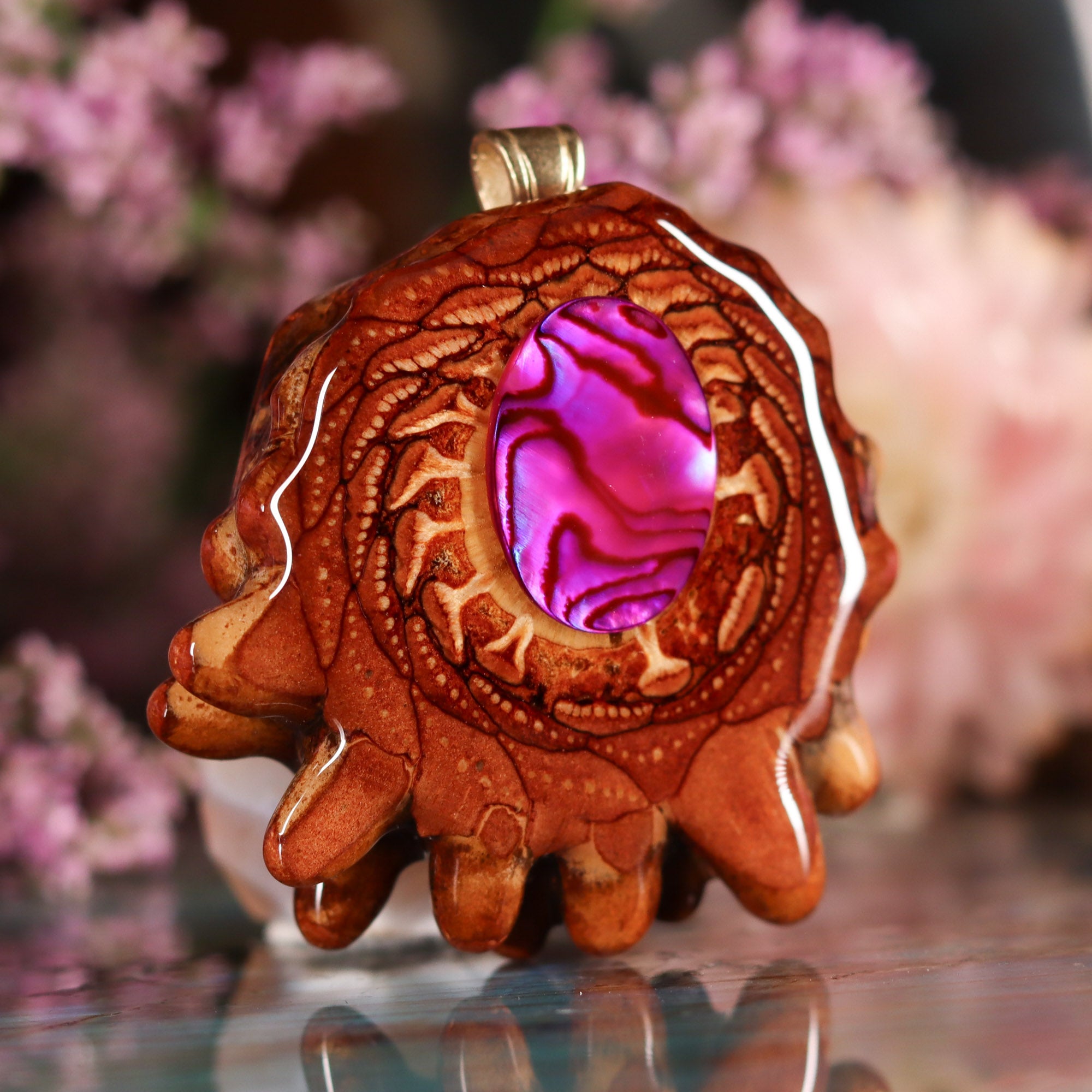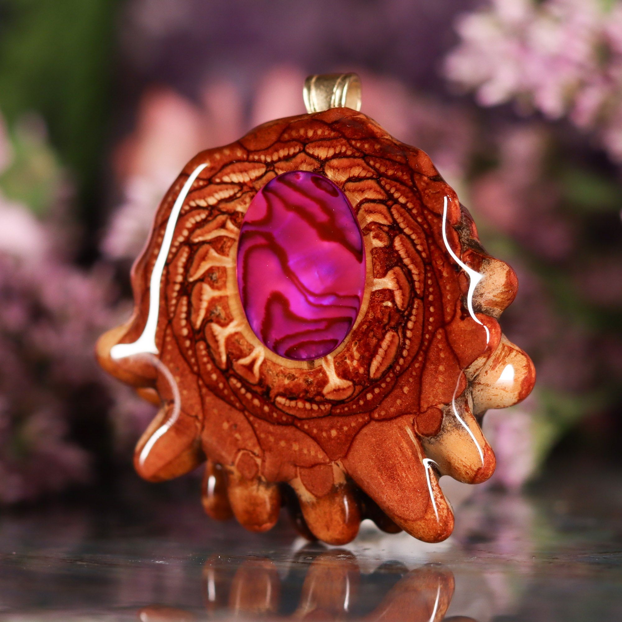 Every pinecone pendant is an elegant gift from Mother Nature -- unveiling the ornate Sacred Geometry hidden at the center of one of the world's densest Pinecones. Because only one cross-section is taken from the "heart" of each Cone, every pendant is absolutely unique, and truly one-of-a-kind.