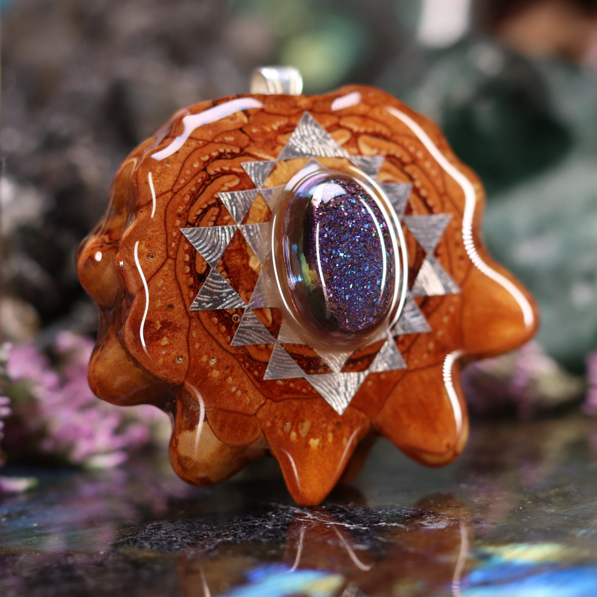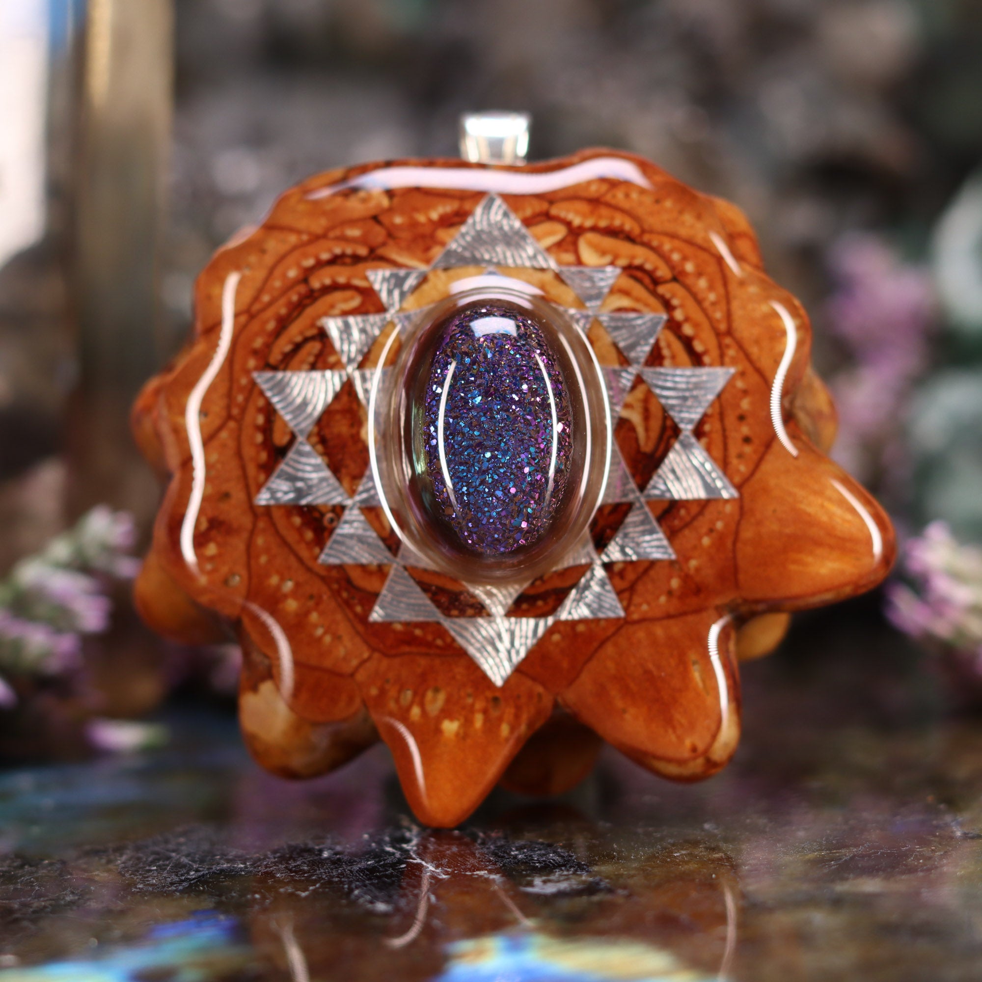 Every pinecone pendant is an elegant gift from Mother Nature -- unveiling the ornate Sacred Geometry hidden at the center of one of the world's densest Pinecones. Because only one cross-section is taken from the "heart" of each Cone, every pendant is absolutely unique, and truly one-of-a-kind.