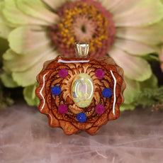 Every pinecone pendant is an elegant gift from Mother Nature -- unveiling the ornate Sacred Geometry hidden at the center of one of the world's densest Pinecones. Because only one cross-section is taken from the "heart" of each Cone, every pendant is absolutely unique, and truly one-of-a-kind.