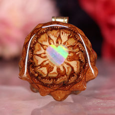 Every pinecone pendant is an elegant gift from Mother Nature -- unveiling the ornate Sacred Geometry hidden at the center of one of the world's densest Pinecones. Because only one cross-section is taken from the "heart" of each Cone, every pendant is absolutely unique, and truly one-of-a-kind.