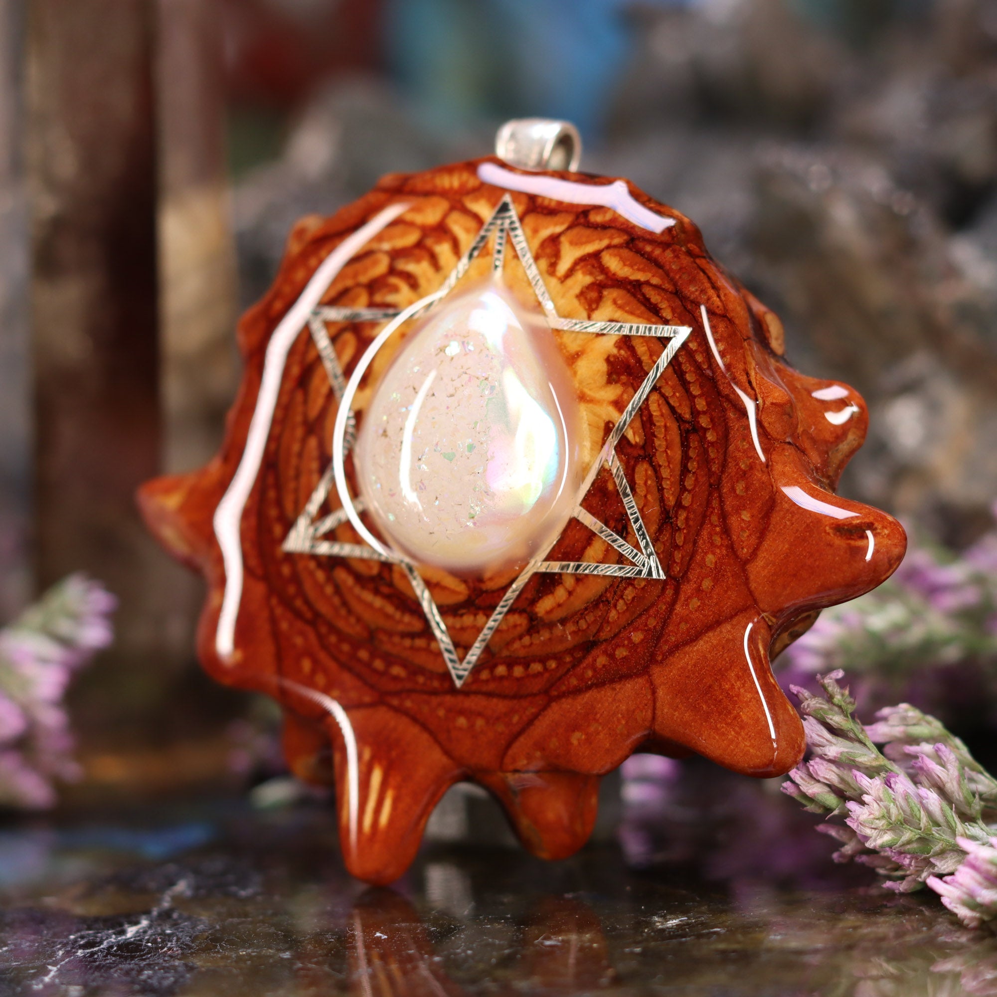 Every pinecone pendant is an elegant gift from Mother Nature -- unveiling the ornate Sacred Geometry hidden at the center of one of the world's densest Pinecones. Because only one cross-section is taken from the "heart" of each Cone, every pendant is absolutely unique, and truly one-of-a-kind.