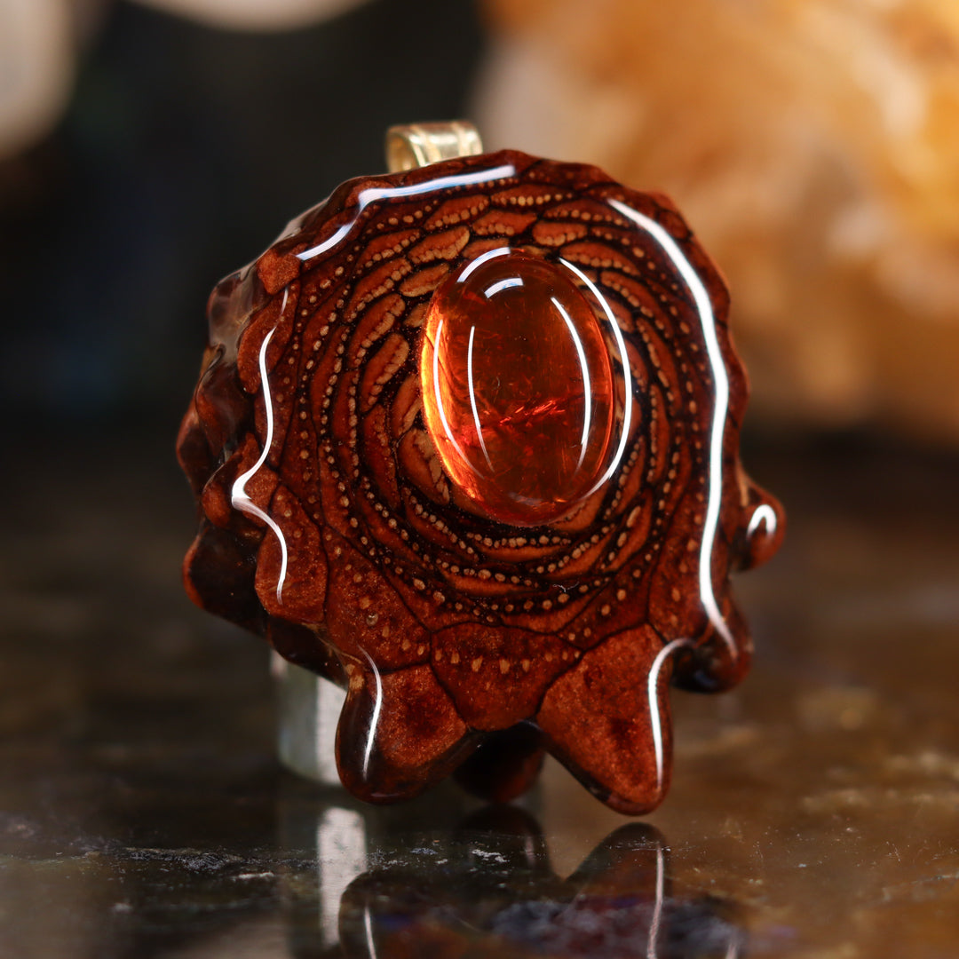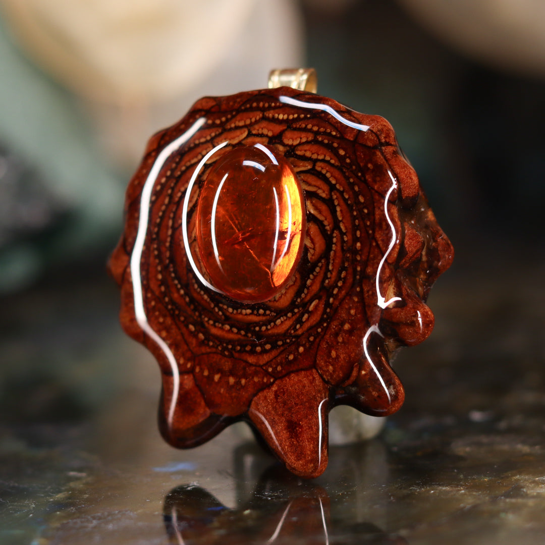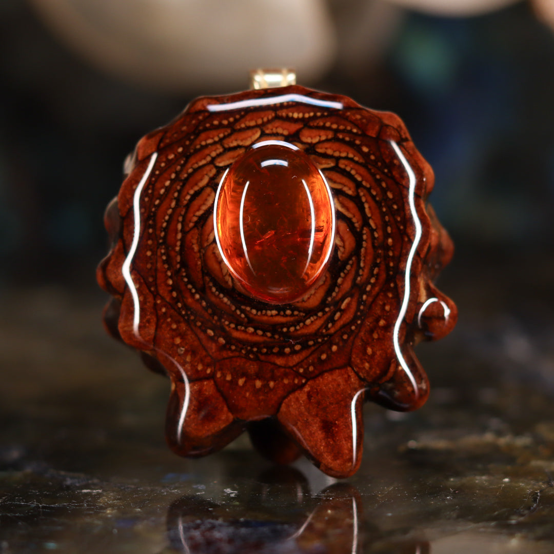 Every pinecone pendant is an elegant gift from Mother Nature -- unveiling the ornate Sacred Geometry hidden at the center of one of the world's densest Pinecones. Because only one cross-section is taken from the "heart" of each Cone, every pendant is absolutely unique, and truly one-of-a-kind.