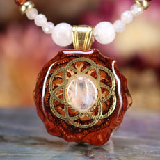 This necklace measures 15 inches (38 cm) and features a Red Coral with Gold Seed of Life pendant lovingly strung with a 3-inch length-adjustable 14k Gold Fill chain with Red Coral, Matte Onyx, and Red Garnet beads to activate and energize body, mind and spirit!