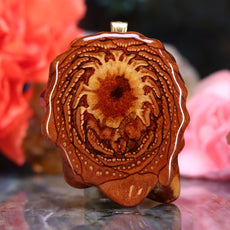 Every pinecone pendant is an elegant gift from Mother Nature -- unveiling the ornate Sacred Geometry hidden at the center of one of the world's densest Pinecones. Because only one cross-section is taken from the "heart" of each Cone, every pendant is absolutely unique, and truly one-of-a-kind.