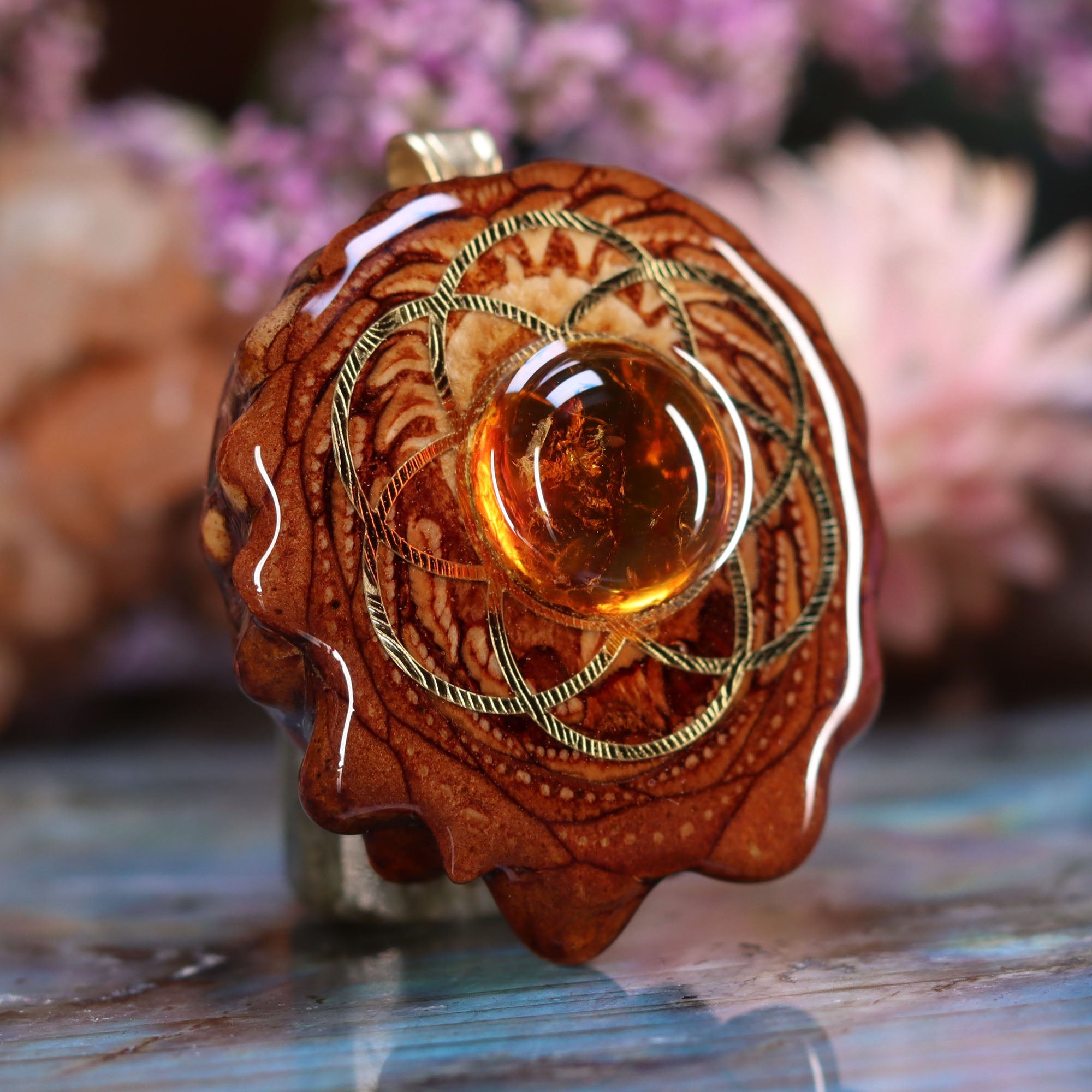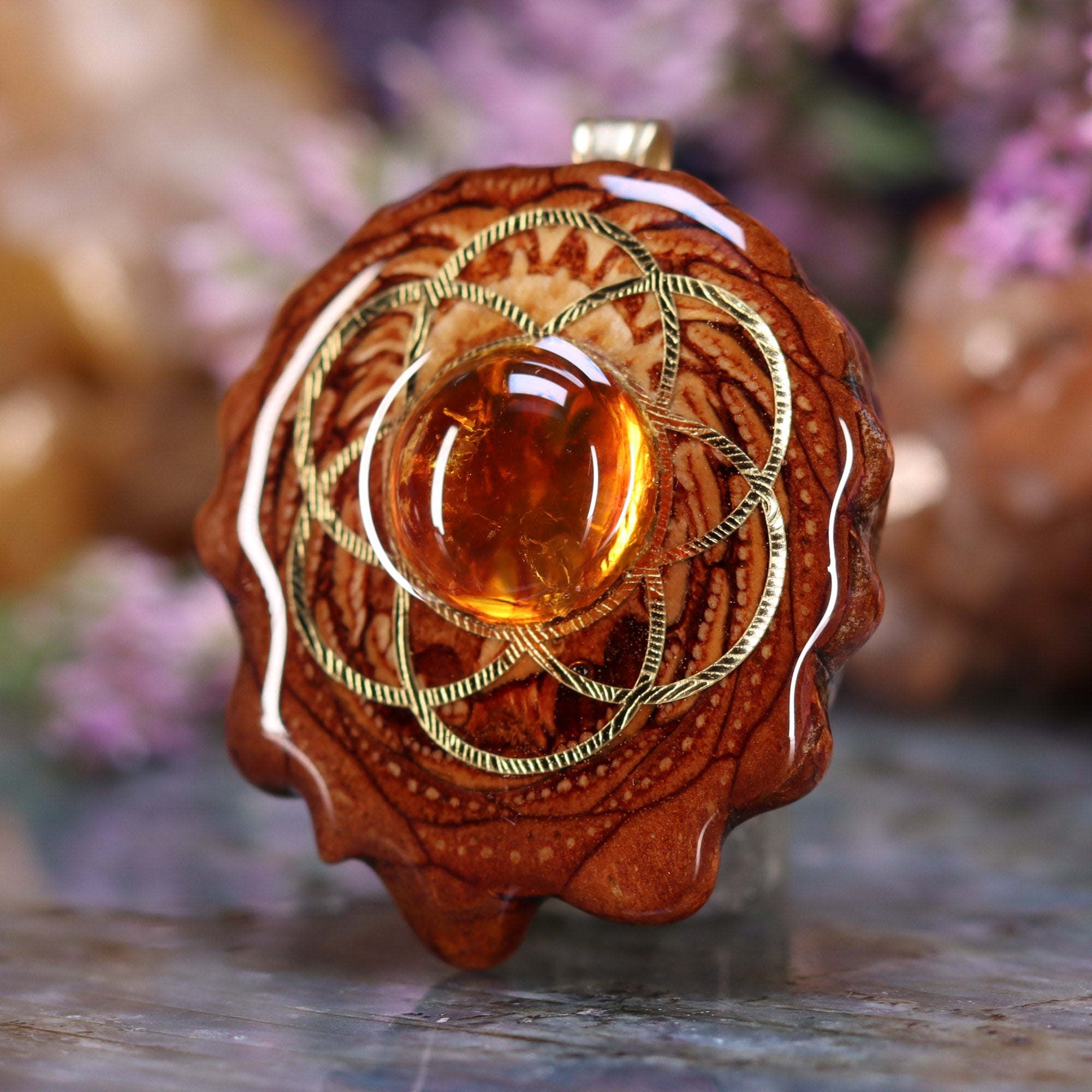 Every pinecone pendant is an elegant gift from Mother Nature -- unveiling the ornate Sacred Geometry hidden at the center of one of the world's densest Pinecones. Because only one cross-section is taken from the "heart" of each Cone, every pendant is absolutely unique, and truly one-of-a-kind.