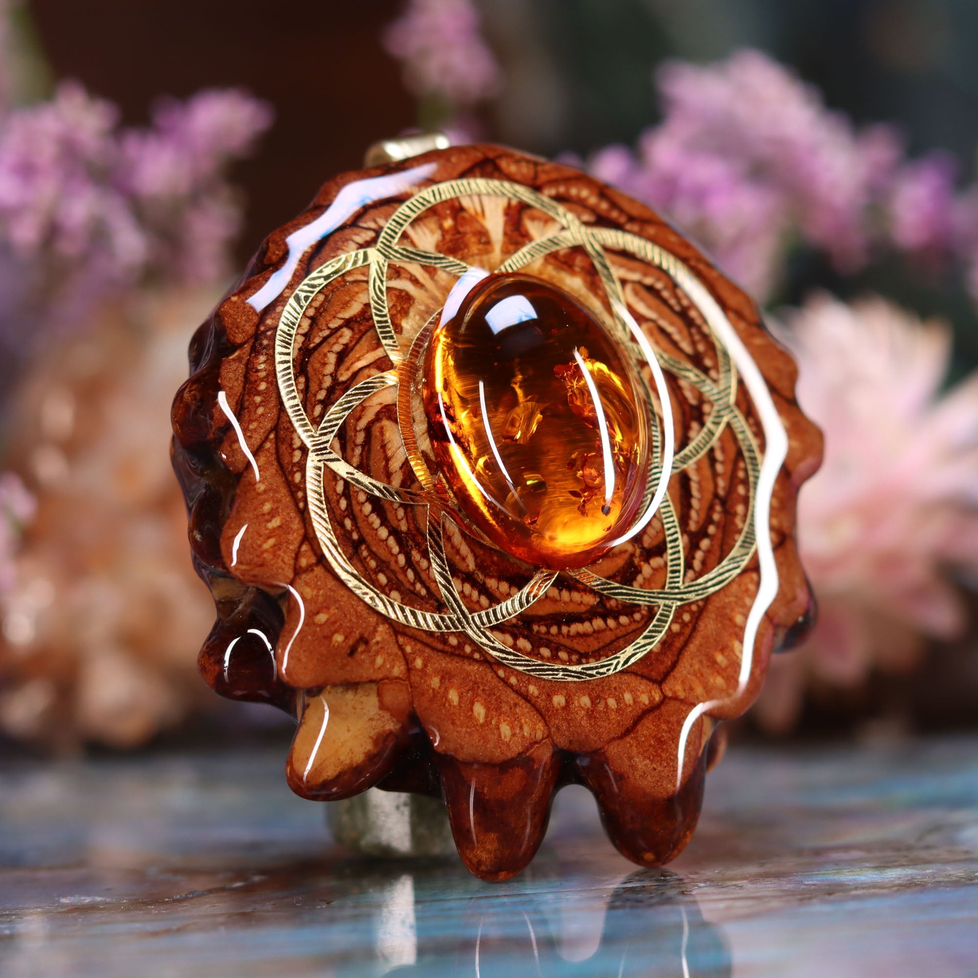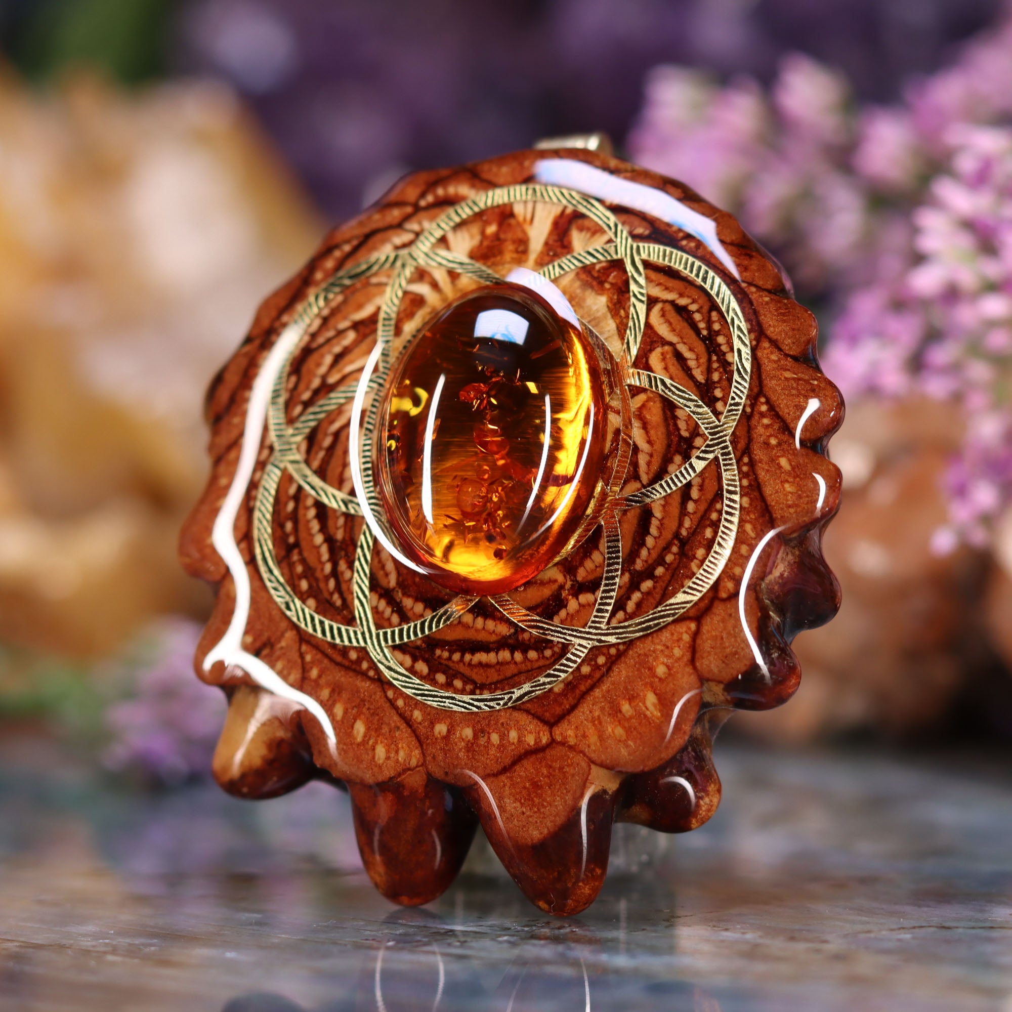 Formed by tree resin that has solidified and fossilized over millions of years, Amber has a potent connection to the energy of the Earth. Appreciated for its color and beauty since the Neolithic times, it has traditionally been used by spiritual and native healers to draw disease from the body, promote physical healing, and as a tool to cleanse the energy in an environment. Amber's nature is very bright and warm, and is thought to encourage a positive mental state and help fight depression.
