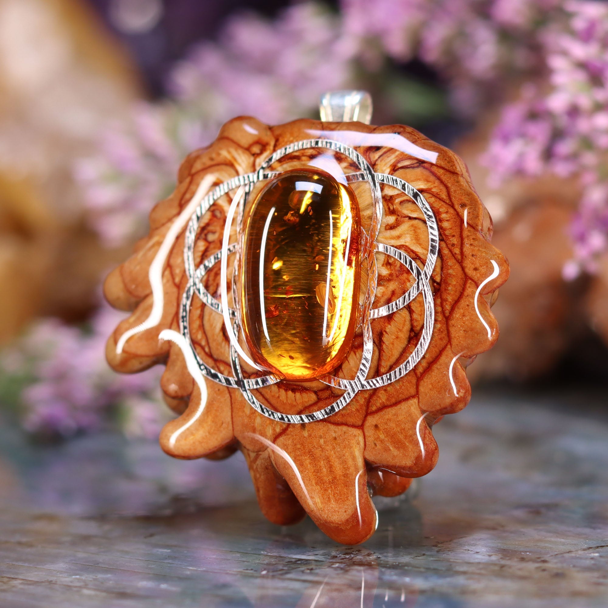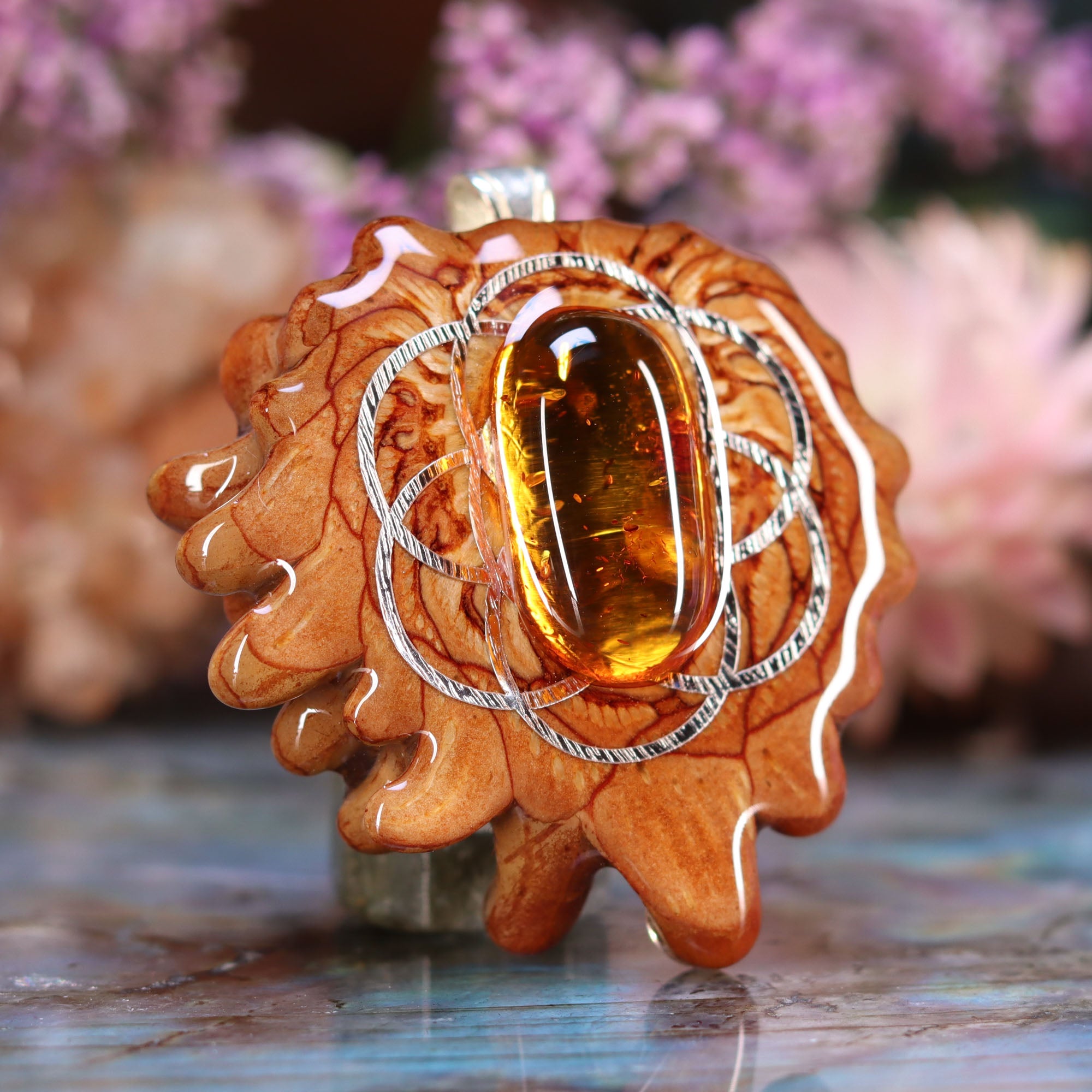 Formed by tree resin that has solidified and fossilized over millions of years, Amber has a potent connection to the energy of the Earth. Appreciated for its color and beauty since the Neolithic times, it has traditionally been used by spiritual and native healers to draw disease from the body, promote physical healing, and as a tool to cleanse the energy in an environment. Amber's nature is very bright and warm, and is thought to encourage a positive mental state and help fight depression.