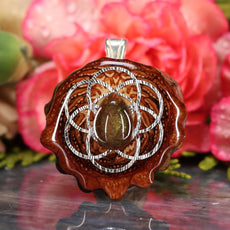Every pinecone pendant is an elegant gift from Mother Nature -- unveiling the ornate Sacred Geometry hidden at the center of one of the world's densest Pinecones. Because only one cross-section is taken from the "heart" of each Cone, every pendant is absolutely unique, and truly one-of-a-kind.