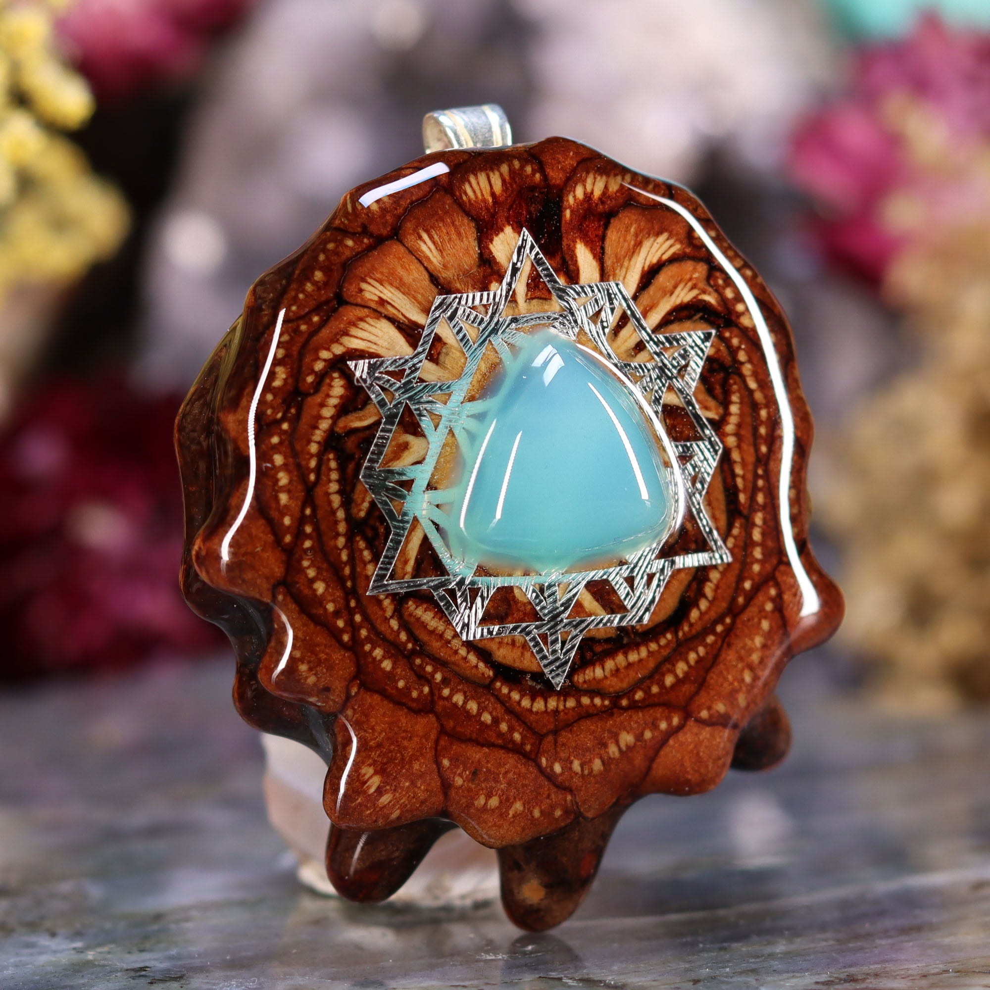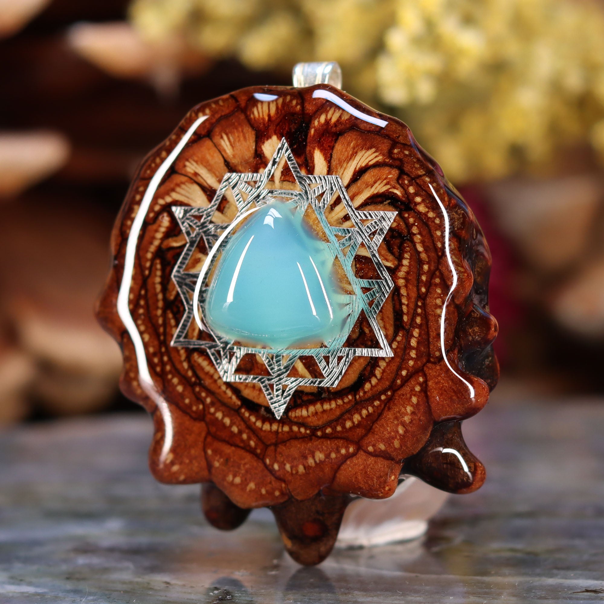 Every pinecone pendant is an elegant gift from Mother Nature -- unveiling the ornate Sacred Geometry hidden at the center of one of the world's densest Pinecones. Because only one cross-section is taken from the "heart" of each Cone, every pendant is absolutely unique, and truly one-of-a-kind.