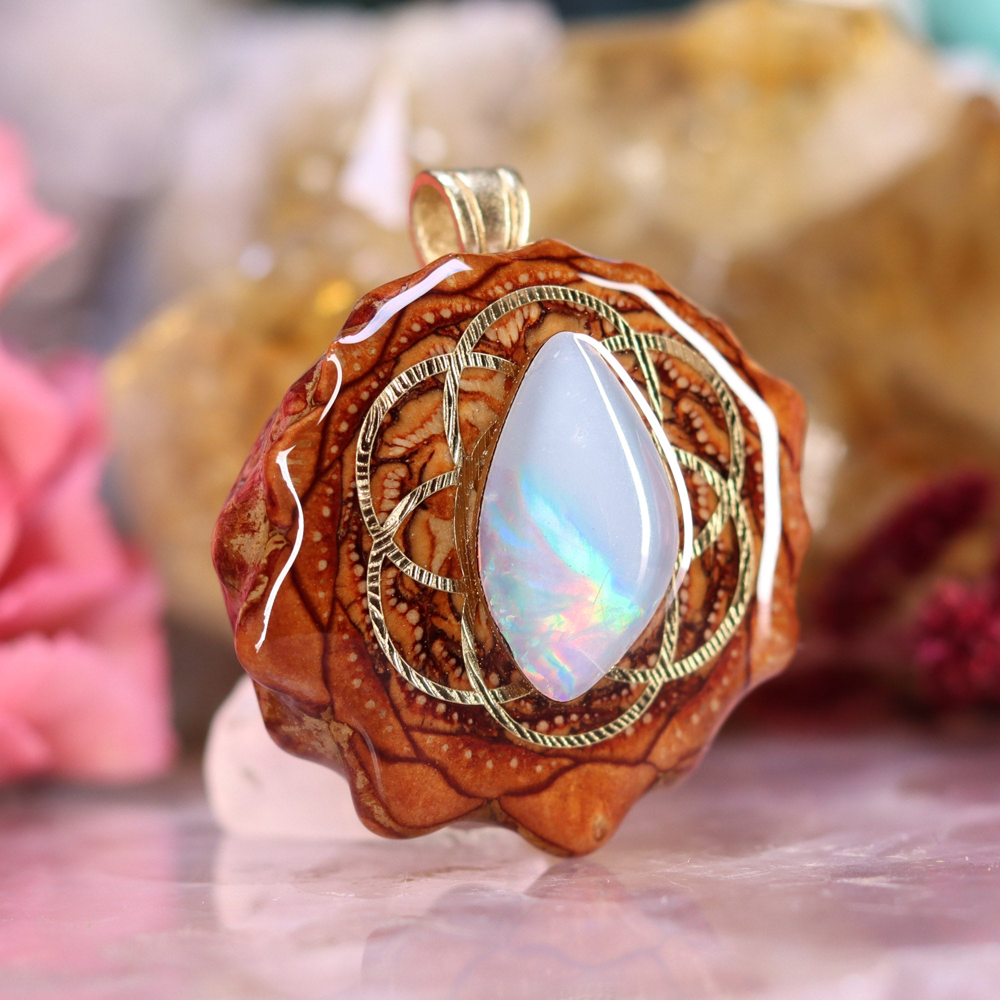 Derived from the Sanskrit word "upala" (meaning "valuable stone"), this stone consists of both colloidal silica and up to 20% water – bringing the fortitude of earth with the unfathomable mystery of water. It is considered to be the crystal of the New Age, and has been beloved by alchemists and mystics throughout the centuries for its ability to facilitate connection to the higher self and to the wisdom of the Ancients. Australian Blue Opal is known for enhancing communication skills and providing one with the courage and freedom to speak at the right time.