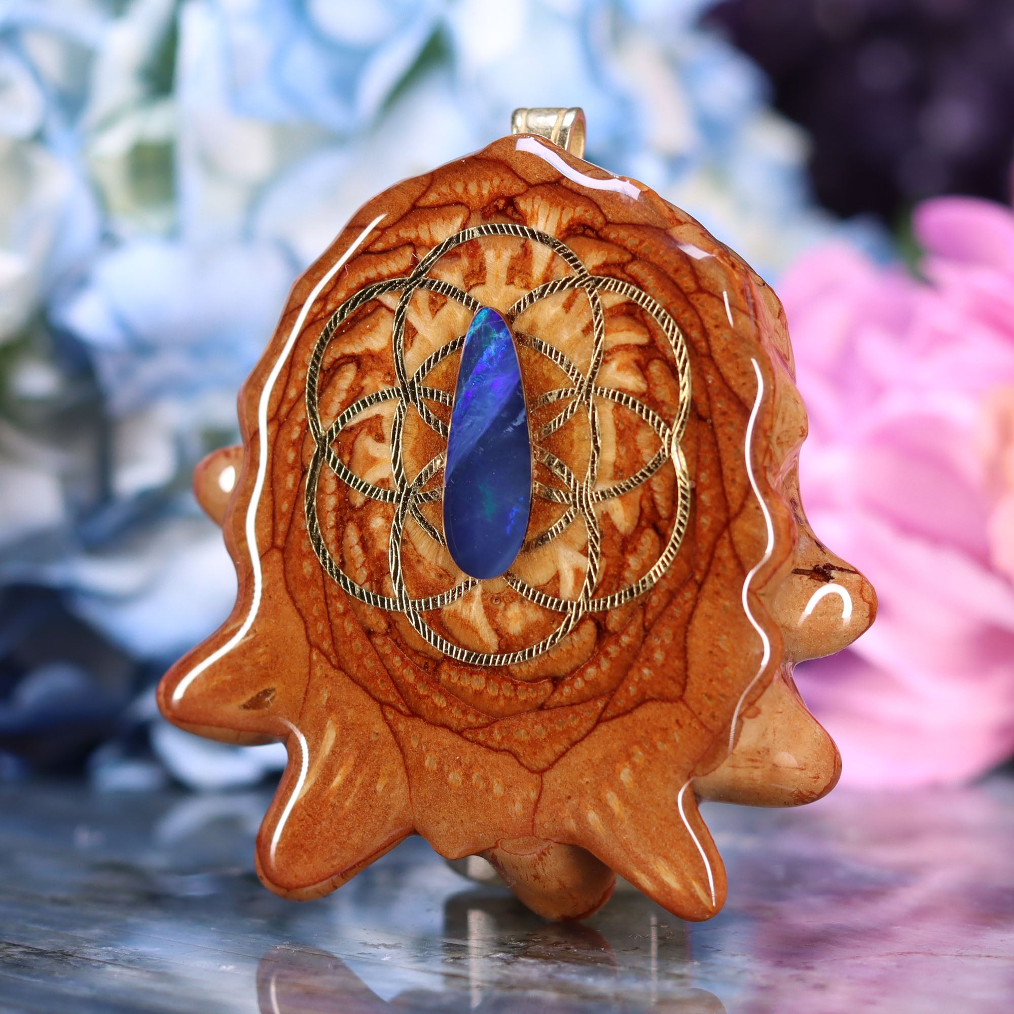 Every pinecone pendant is an elegant gift from Mother Nature -- unveiling the ornate Sacred Geometry hidden at the center of one of the world's densest Pinecones. Because only one cross-section is taken from the "heart" of each Cone, every pendant is absolutely unique, and truly one-of-a-kind.