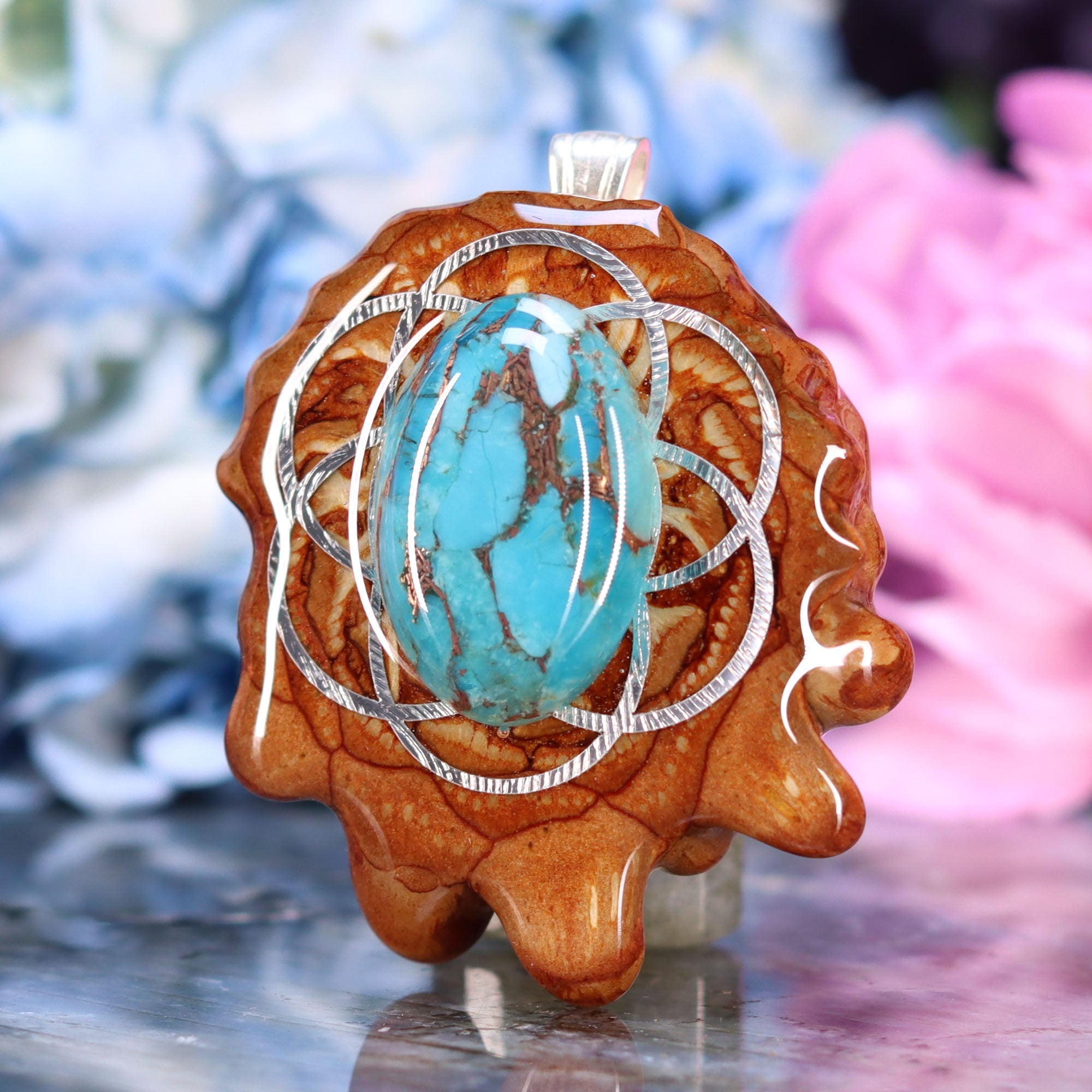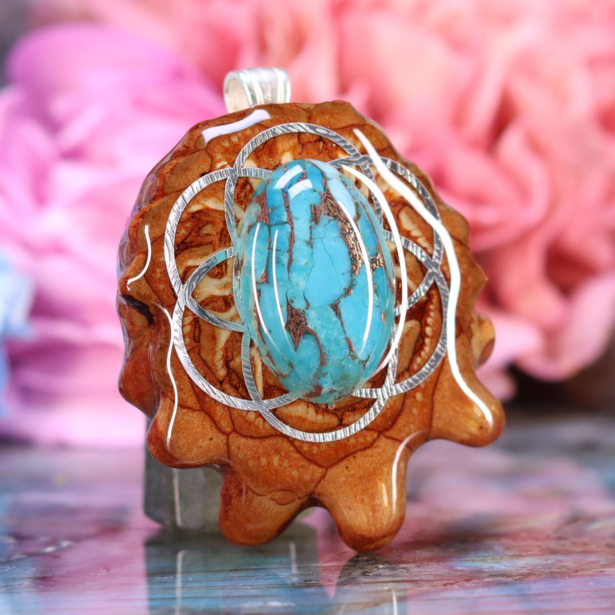 Every pinecone pendant is an elegant gift from Mother Nature -- unveiling the ornate Sacred Geometry hidden at the center of one of the world's densest Pinecones. Because only one cross-section is taken from the "heart" of each Cone, every pendant is absolutely unique, and truly one-of-a-kind.