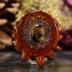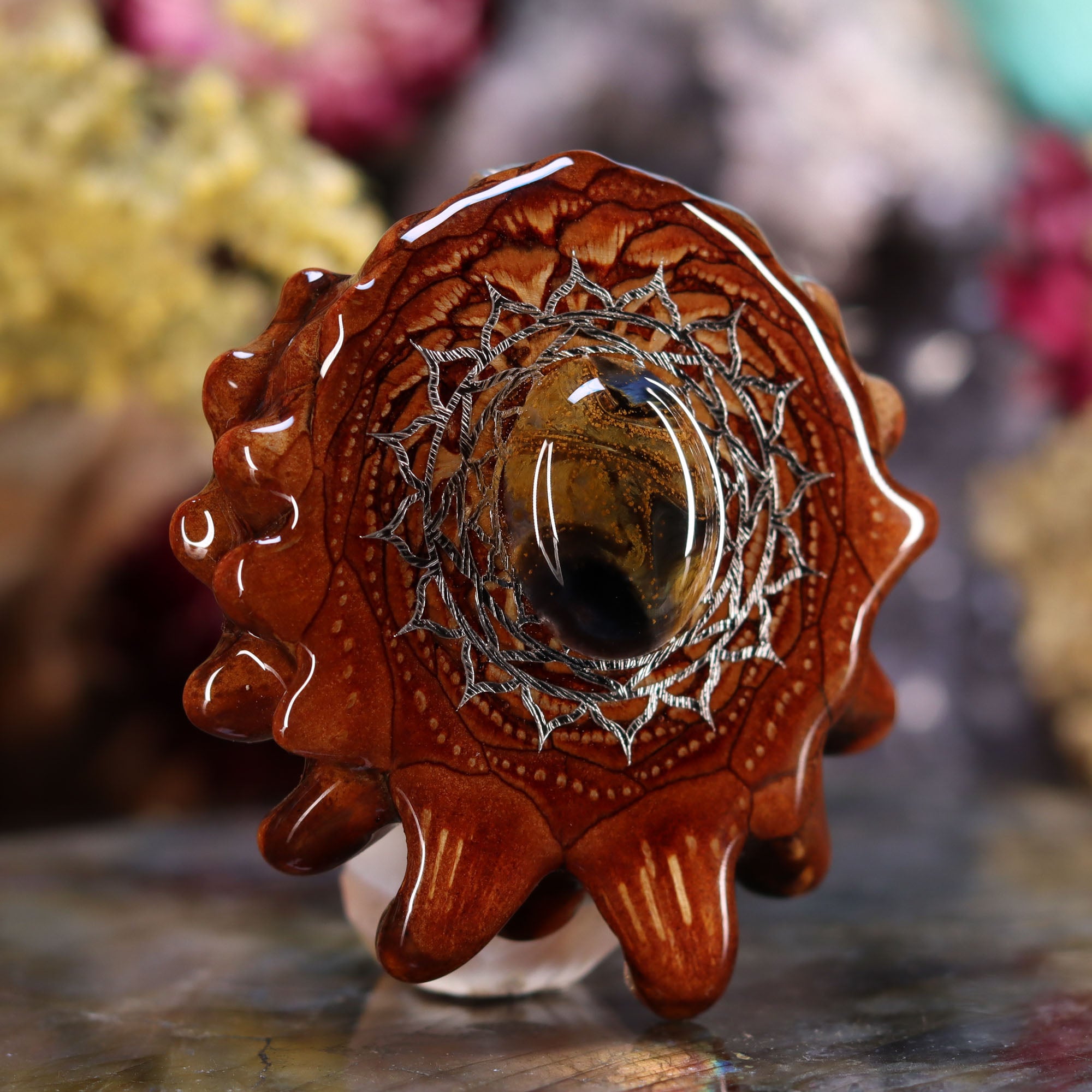 This Pinecone is blessed by a Sterling Silver emblem of the 7th Chakra. Known as "Sahasrara" (meaning “Thousandfold”) in Sanskrit, the Crown chakra relates to expanding one’s consciousness, increasing abilities to perceive, and a feeling of spiritual connectedness.