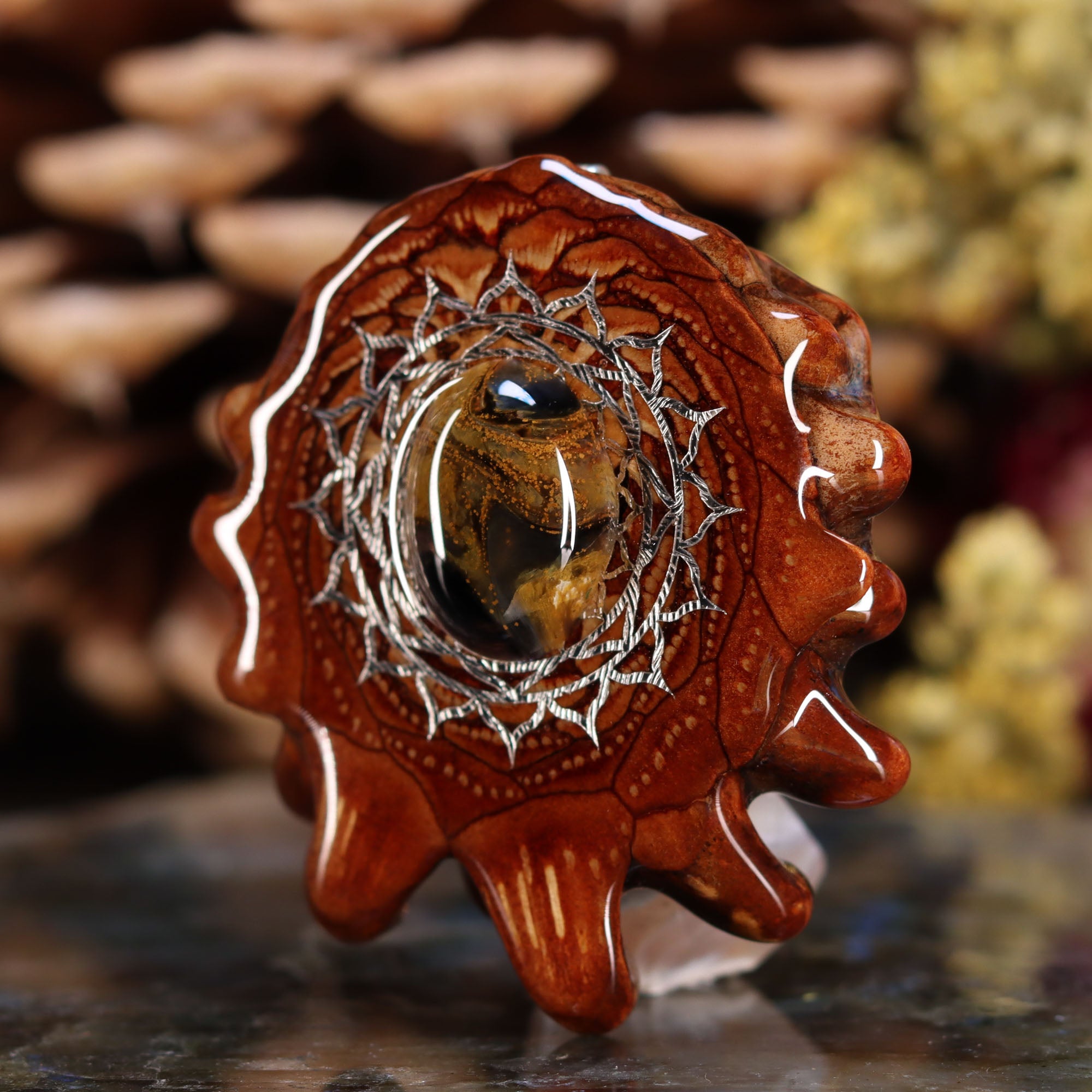 Every pinecone pendant is an elegant gift from Mother Nature -- unveiling the ornate Sacred Geometry hidden at the center of one of the world's densest Pinecones. Because only one cross-section is taken from the "heart" of each Cone, every pendant is absolutely unique, and truly one-of-a-kind.
