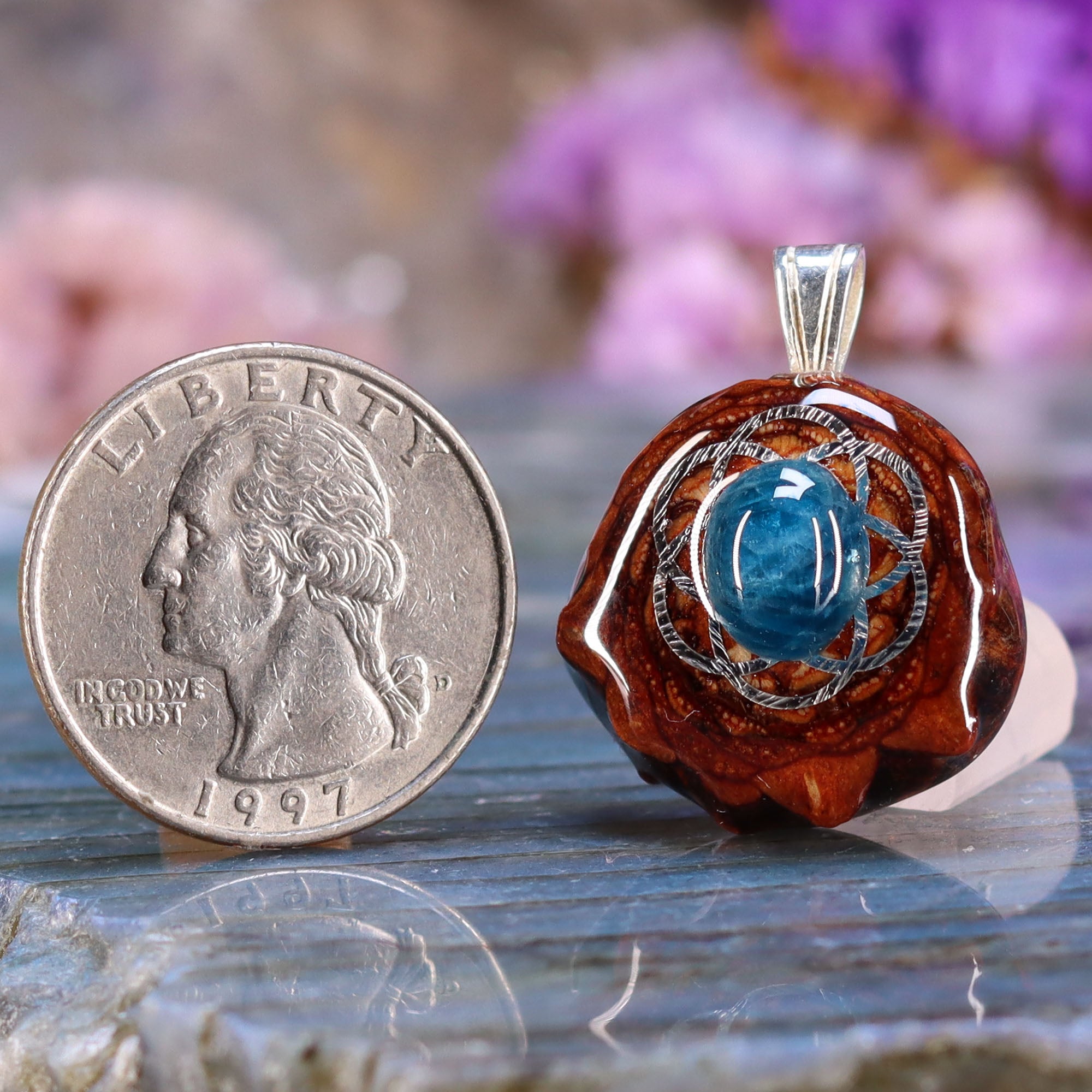 Every pinecone pendant is an elegant gift from Mother Nature -- unveiling the ornate Sacred Geometry hidden at the center of one of the world's densest Pinecones. Because only one cross-section is taken from the "heart" of each Cone, every pendant is absolutely unique, and truly one-of-a-kind.
