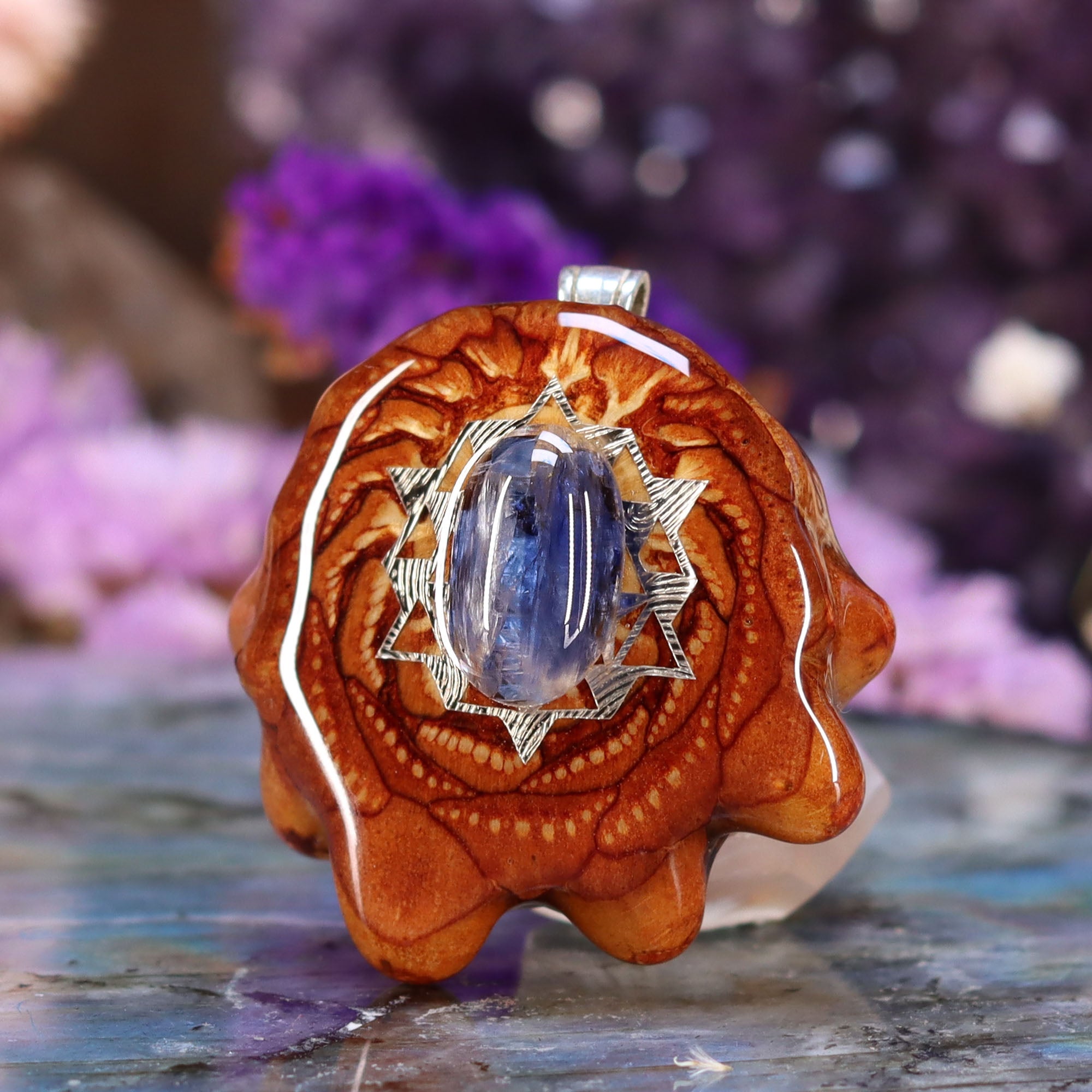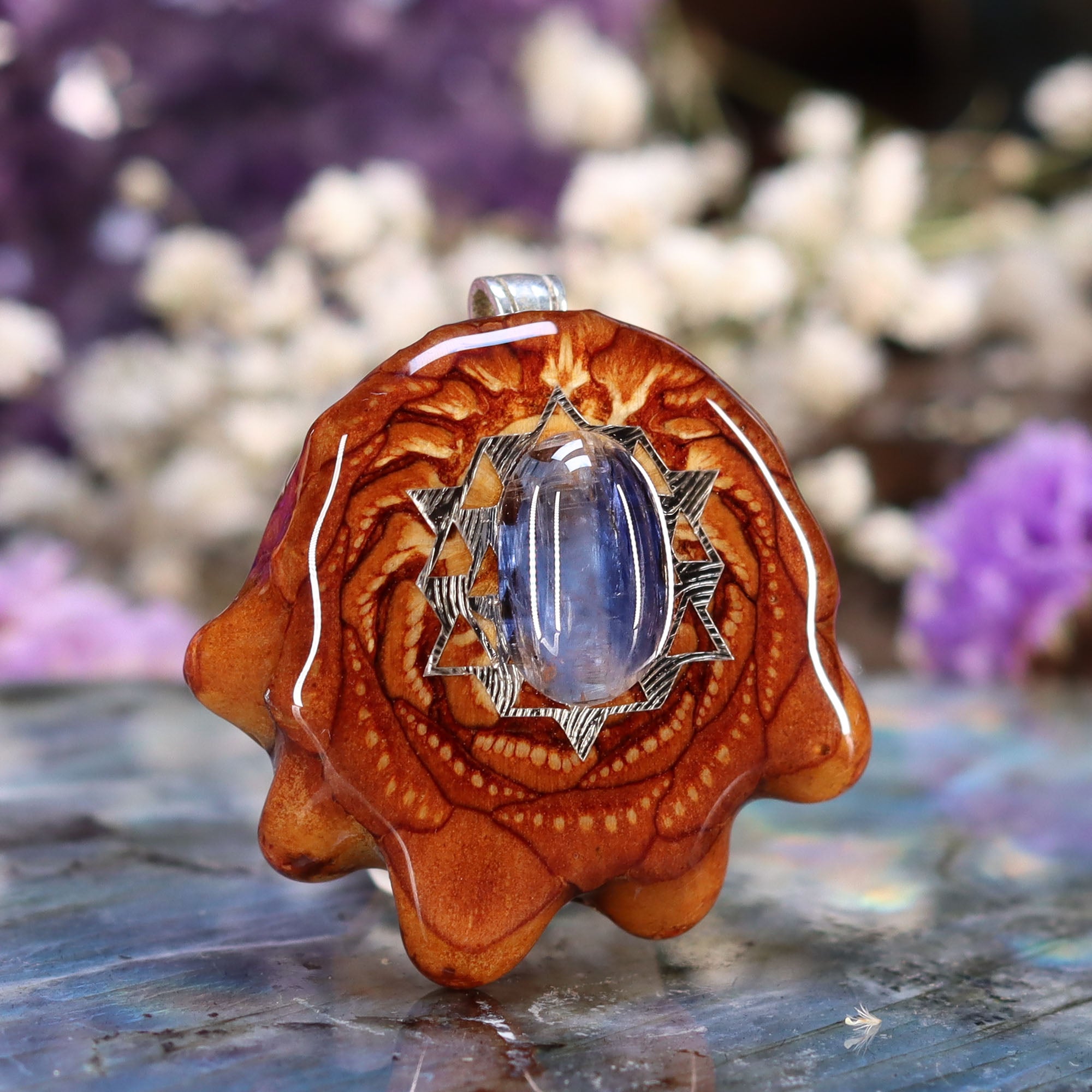 Every pinecone pendant is an elegant gift from Mother Nature -- unveiling the ornate Sacred Geometry hidden at the center of one of the world's densest Pinecones. Because only one cross-section is taken from the "heart" of each Cone, every pendant is absolutely unique, and truly one-of-a-kind.