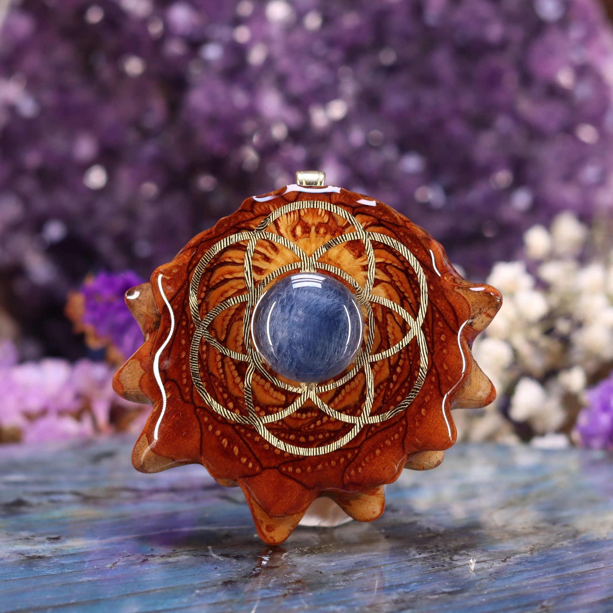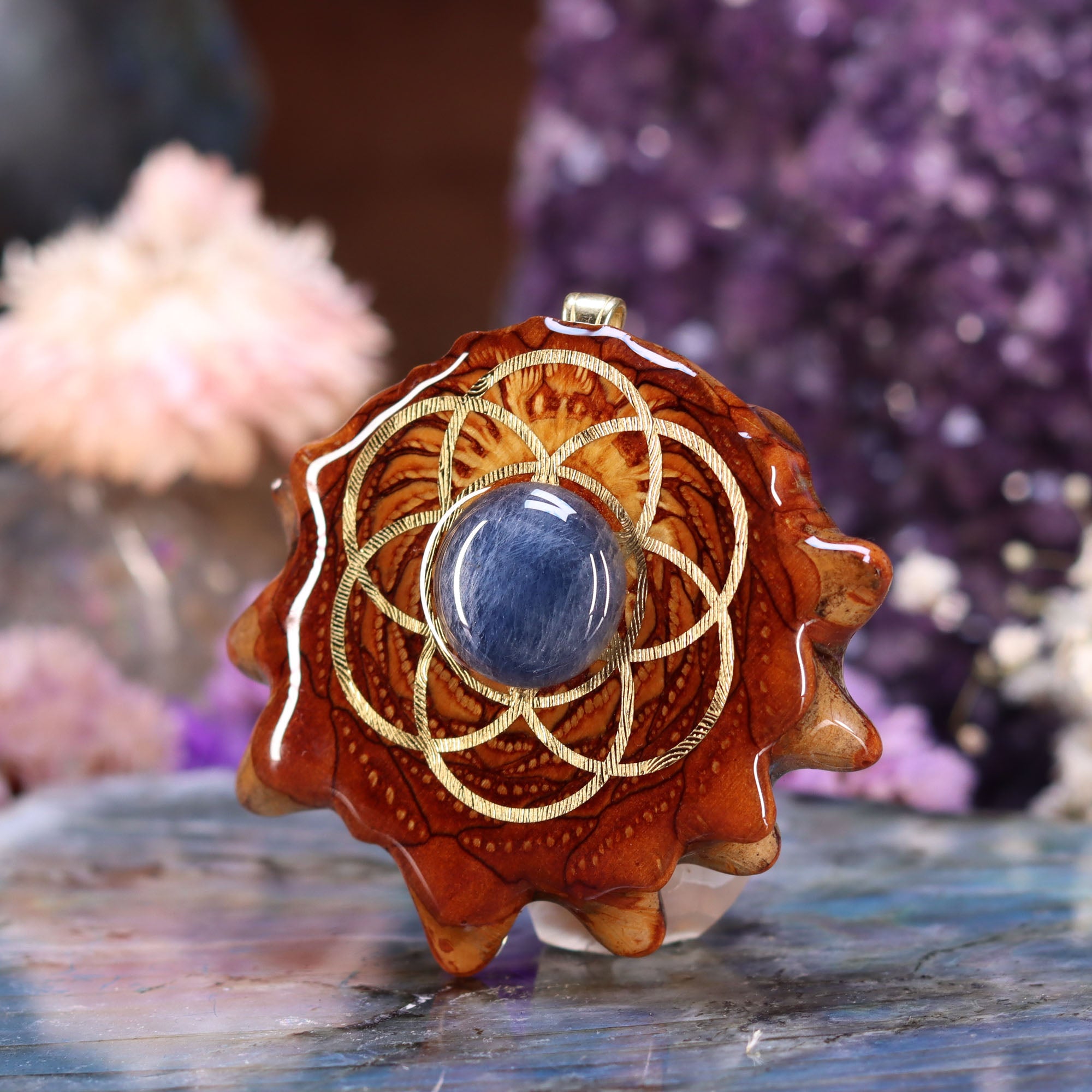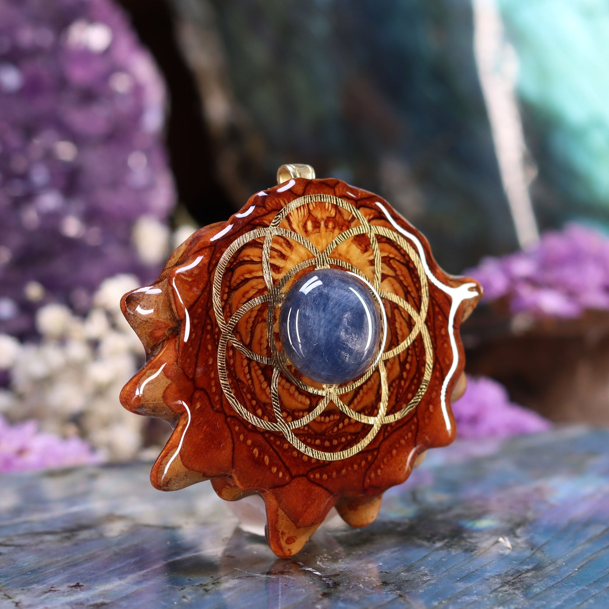 Every pinecone pendant is an elegant gift from Mother Nature -- unveiling the ornate Sacred Geometry hidden at the center of one of the world's densest Pinecones. Because only one cross-section is taken from the "heart" of each Cone, every pendant is absolutely unique, and truly one-of-a-kind.