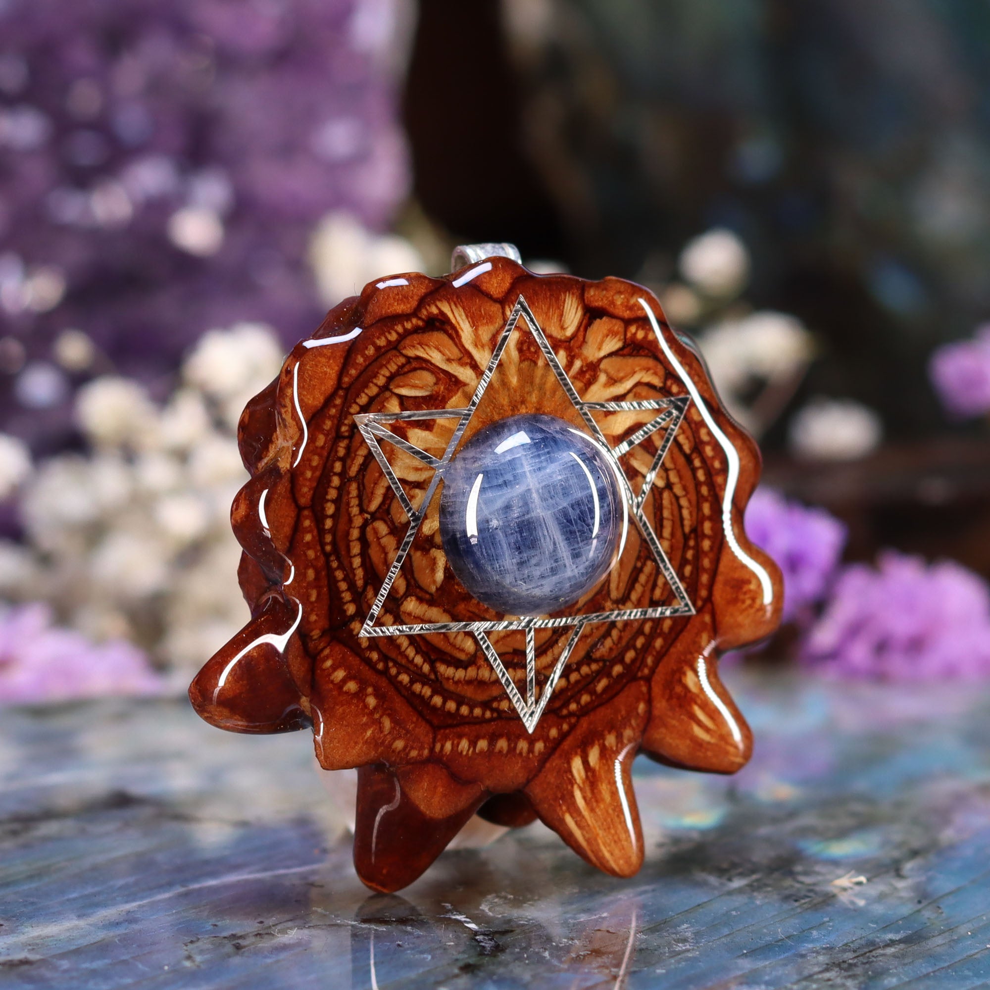 This Pinecone has been anointed with our "Merkaba" emblem, cast in Sterling Silver. Merkaba - "Mer" meaning Light, "Ka" meaning Spirit, and "Ba" meaning Body - is a powerful icon historically known as the "Vehicle of Ascension". The Merkaba opens the mind to increased awareness and promotes deep conscious interconnection.