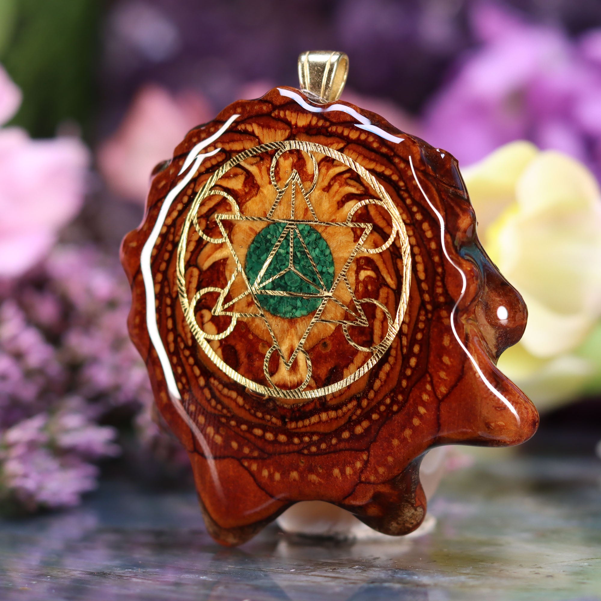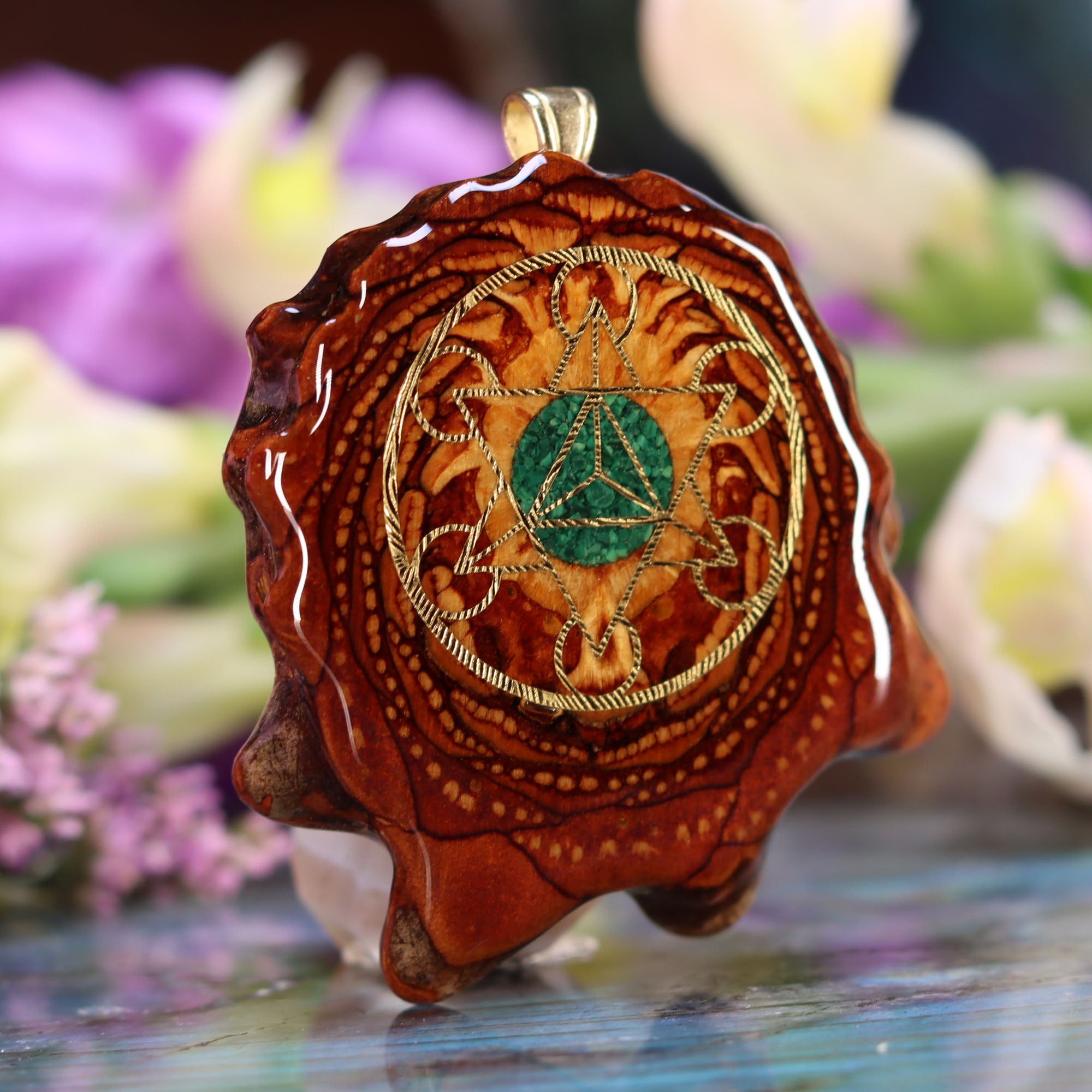 Every pinecone pendant is an elegant gift from Mother Nature -- unveiling the ornate Sacred Geometry hidden at the center of one of the world's densest Pinecones. Because only one cross-section is taken from the "heart" of each Cone, every pendant is absolutely unique, and truly one-of-a-kind.