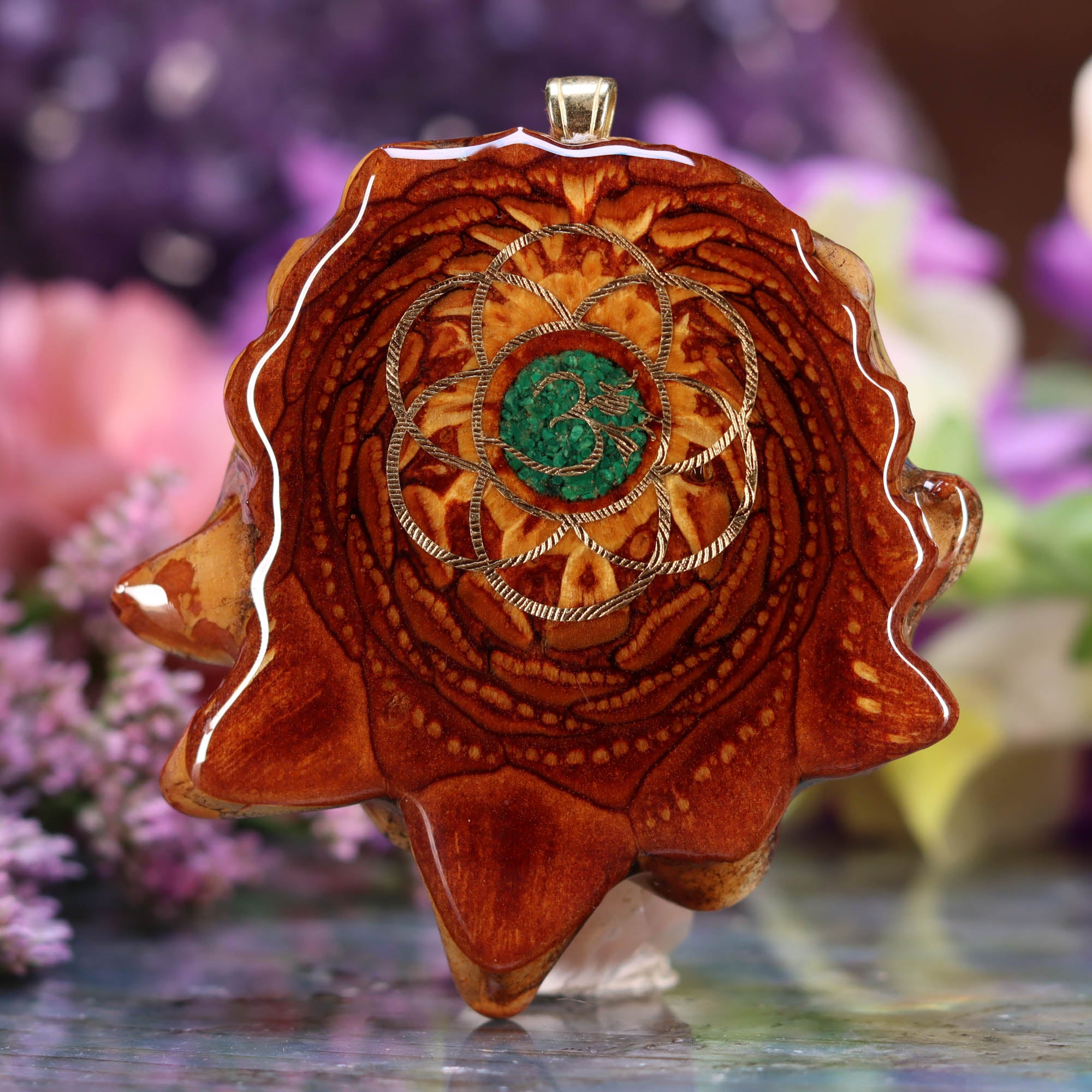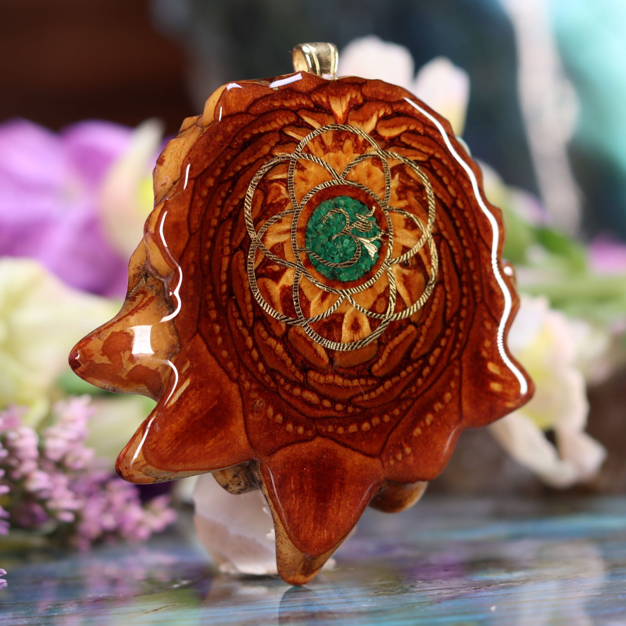 Every pinecone pendant is an elegant gift from Mother Nature -- unveiling the ornate Sacred Geometry hidden at the center of one of the world's densest Pinecones. Because only one cross-section is taken from the "heart" of each Cone, every pendant is absolutely unique, and truly one-of-a-kind.