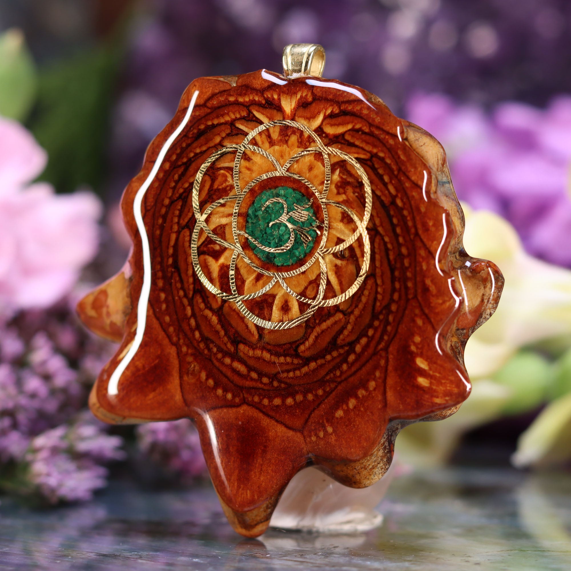 The front of this Pinecone has been anointed with our "Third Eye" emblem, cast in 24k Gold. This powerful icon is a fusion of the Egyptian "Eye of Horus" -- a source of protection, good-health and power -- and the "Om" symbol -- a sacred symbol of the omnipotent, omnipresent divine, and of spiritual ascension.