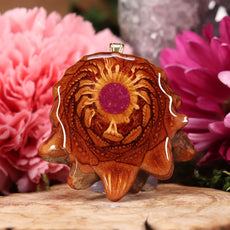 Every pinecone pendant is an elegant gift from Mother Nature -- unveiling the ornate Sacred Geometry hidden at the center of one of the world's densest Pinecones. Because only one cross-section is taken from the "heart" of each Cone, every pendant is absolutely unique, and truly one-of-a-kind.