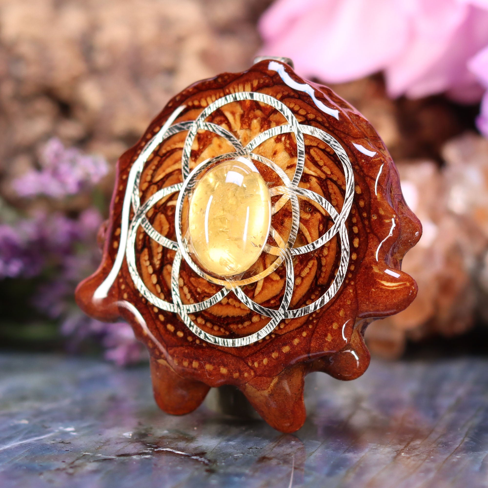 Every pinecone pendant is an elegant gift from Mother Nature -- unveiling the ornate Sacred Geometry hidden at the center of one of the world's densest Pinecones. Because only one cross-section is taken from the "heart" of each Cone, every pendant is absolutely unique, and truly one-of-a-kind.