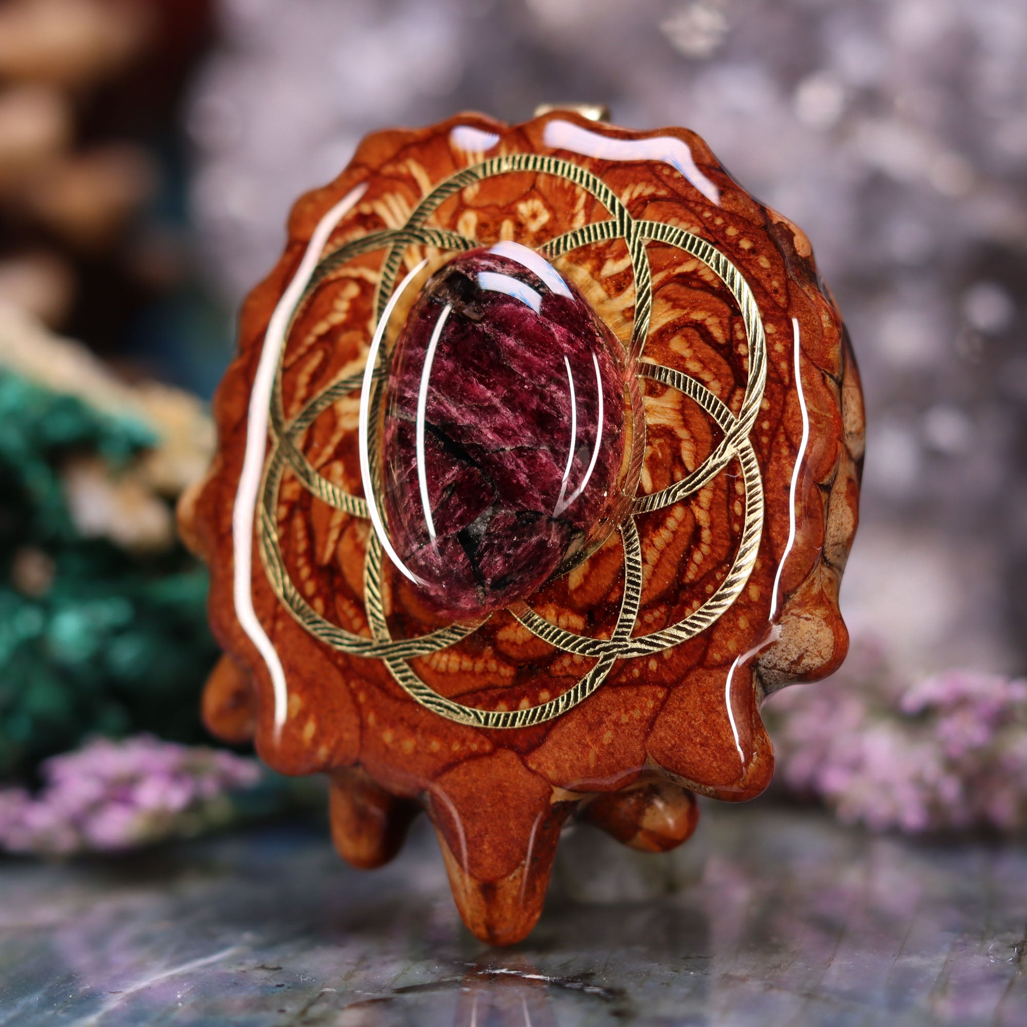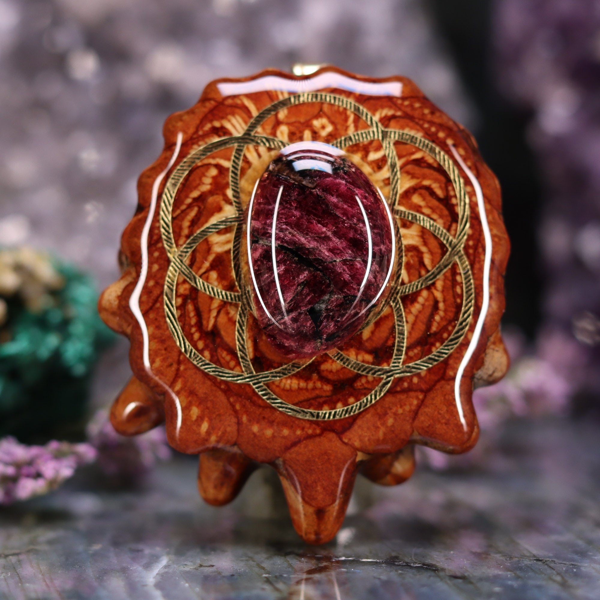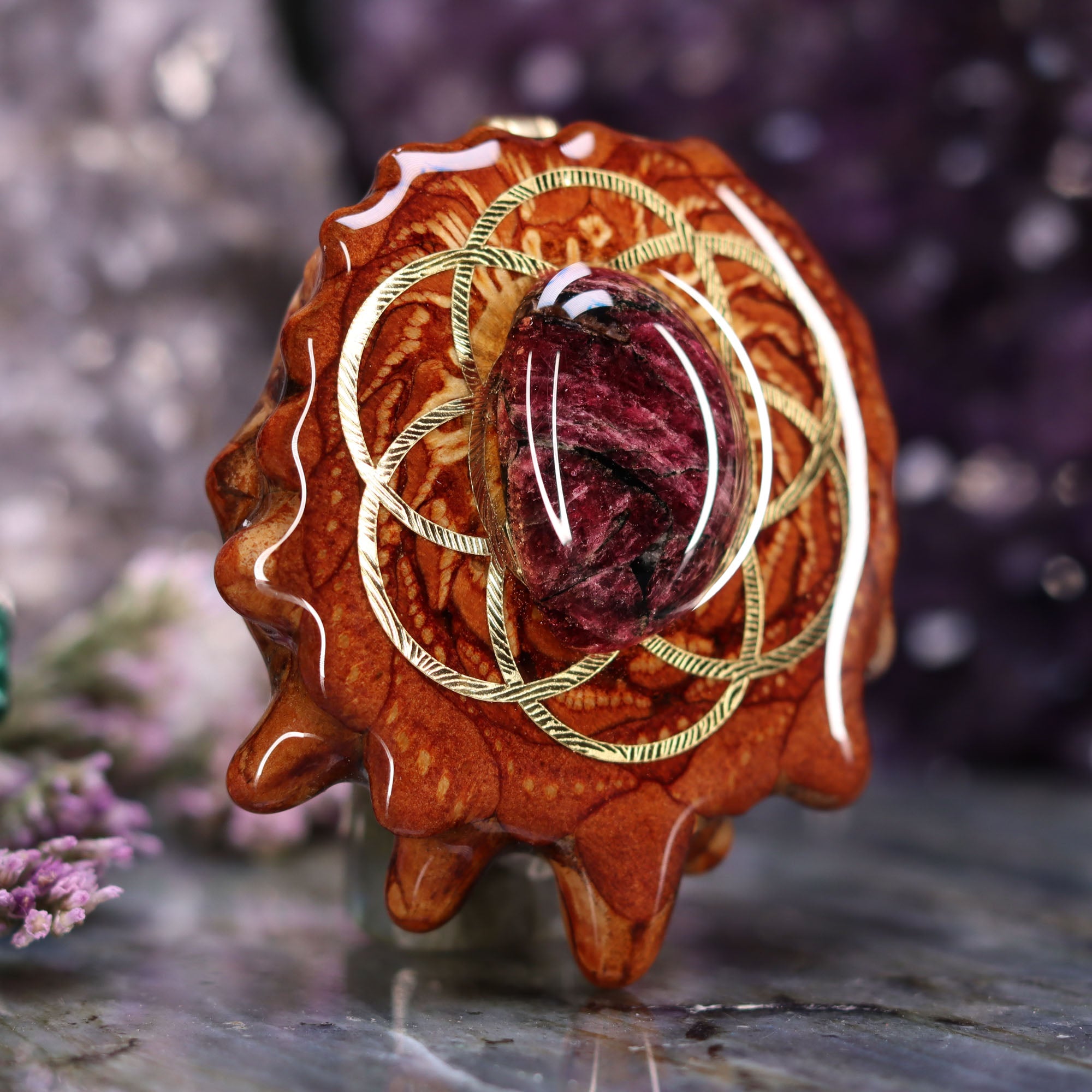 Every pinecone pendant is an elegant gift from Mother Nature -- unveiling the ornate Sacred Geometry hidden at the center of one of the world's densest Pinecones. Because only one cross-section is taken from the "heart" of each Cone, every pendant is absolutely unique, and truly one-of-a-kind.
