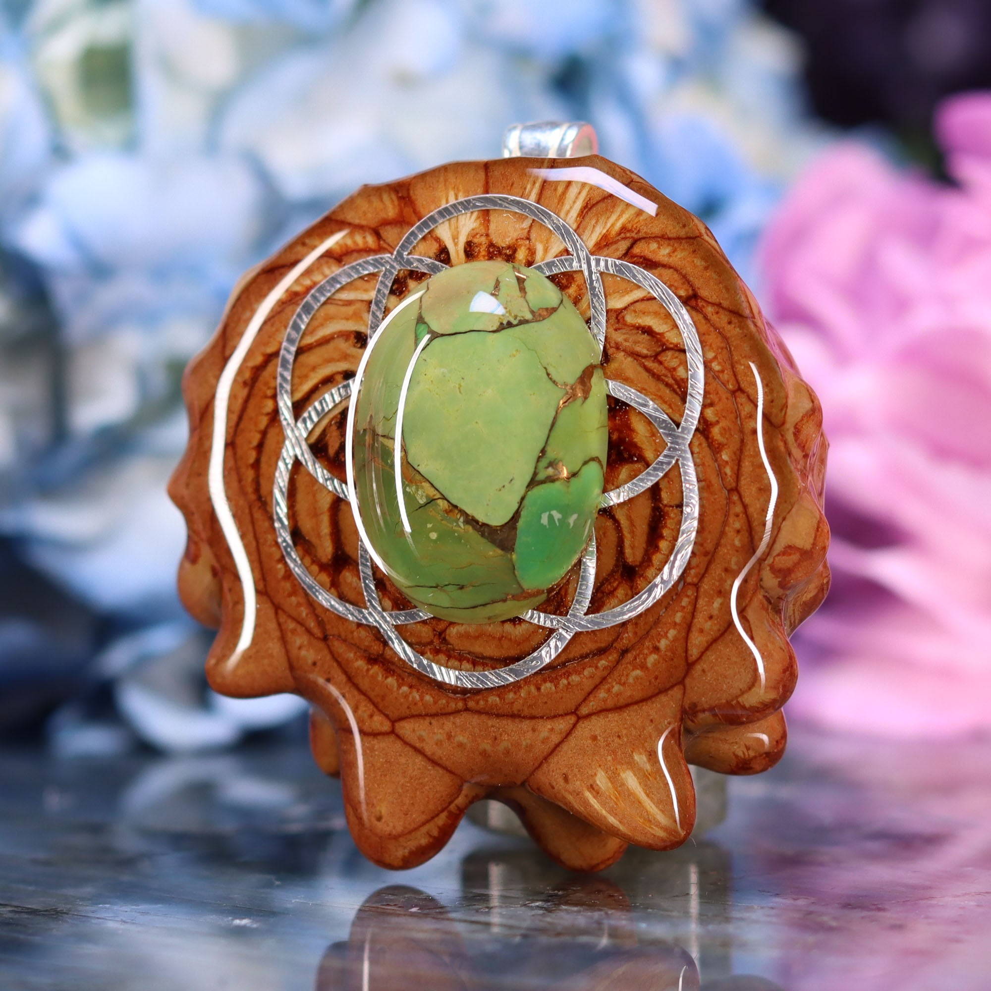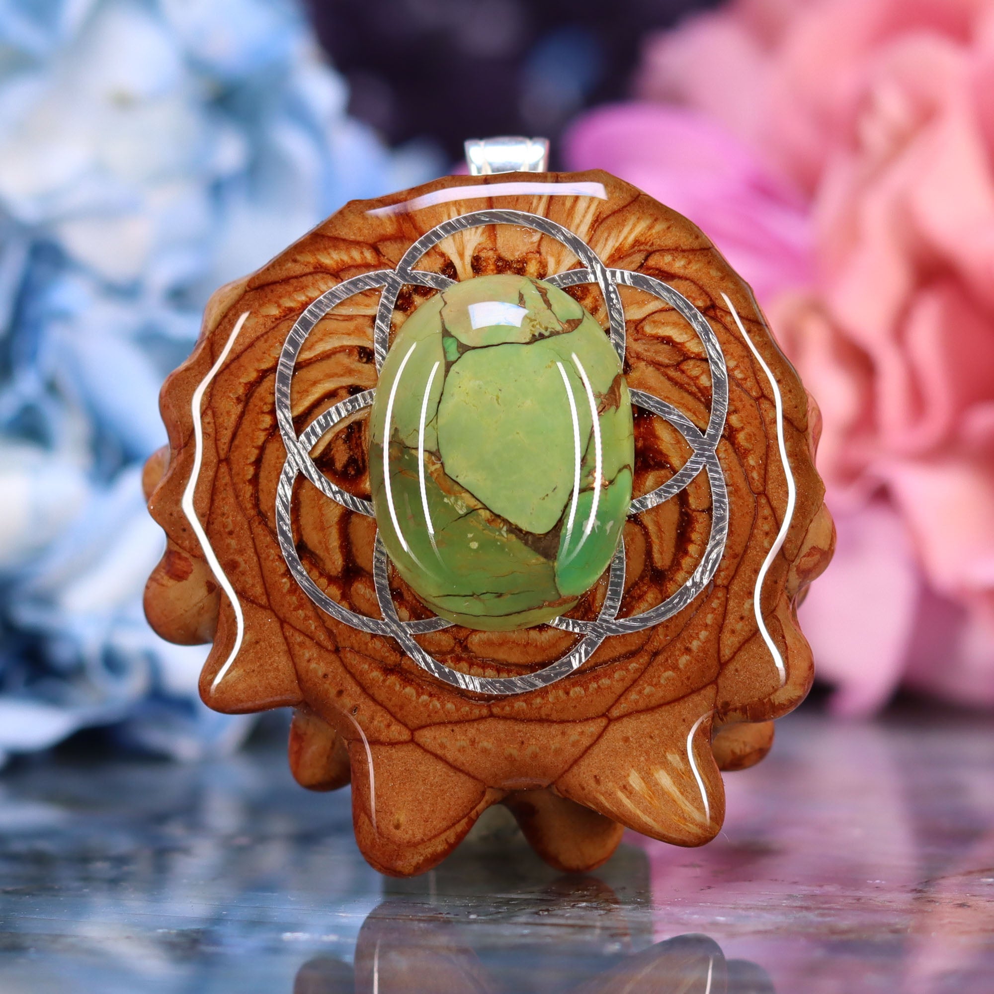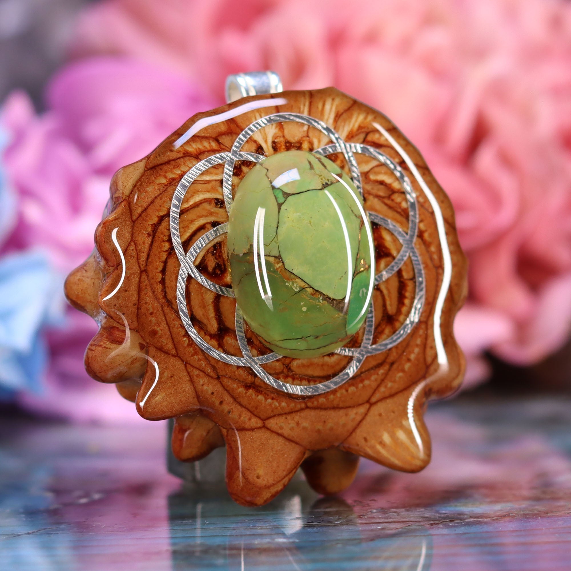 Every pinecone pendant is an elegant gift from Mother Nature -- unveiling the ornate Sacred Geometry hidden at the center of one of the world's densest Pinecones. Because only one cross-section is taken from the "heart" of each Cone, every pendant is absolutely unique, and truly one-of-a-kind.